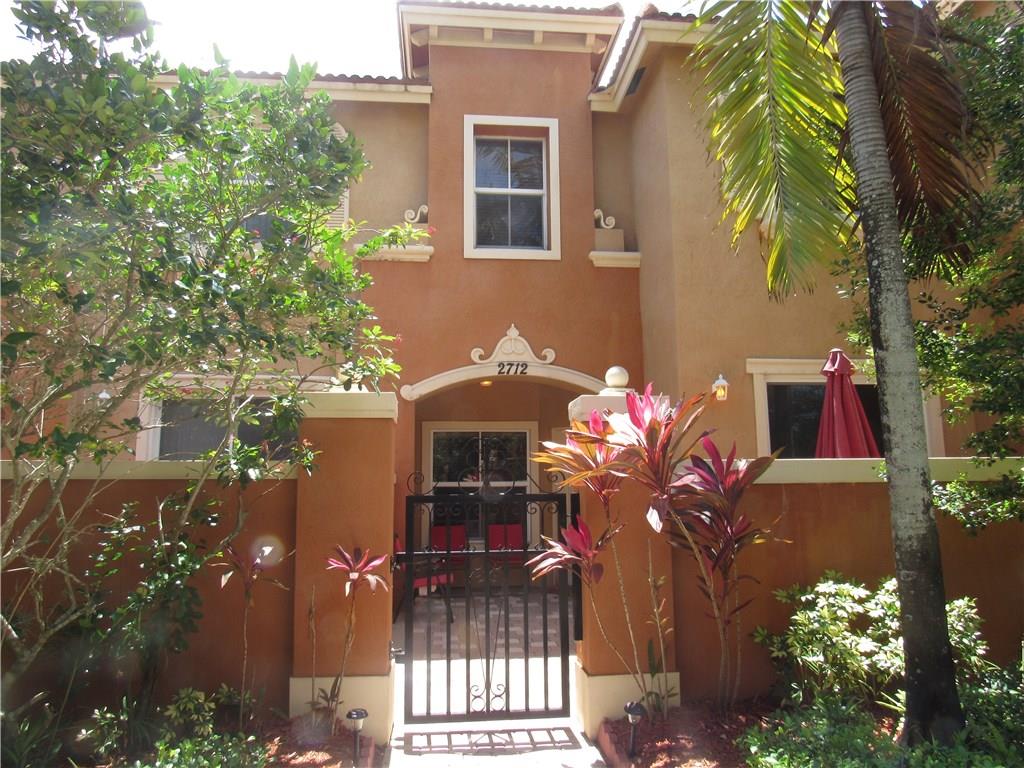 Beautifully maintained 2-story Townhouse in Gated Community. 1st floor: Neutral Tile floors, Renovated Kitchen w/ Granite, Wood Cabinets, SS Appliances, Dining, Family Rooms, ½ bath, laundry, Patio. 2nd floor: Hardwood Floors, 2 bedrooms w/ full bath, Masters w/ full bath, 2 closets, private terrace. Comes w/ 2 assigned parking spaces.