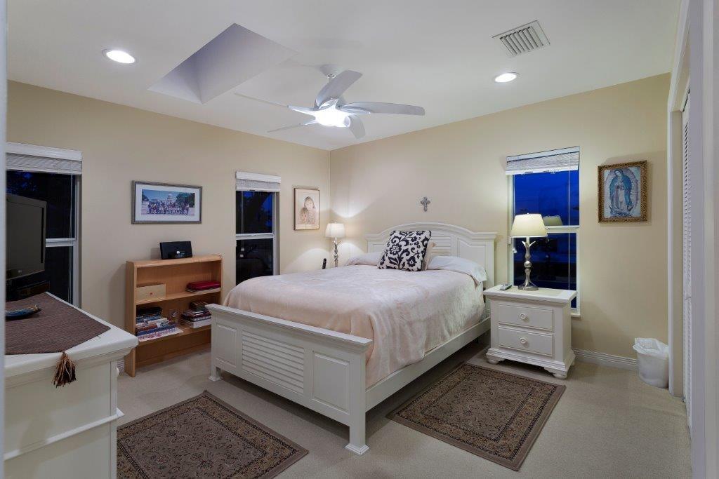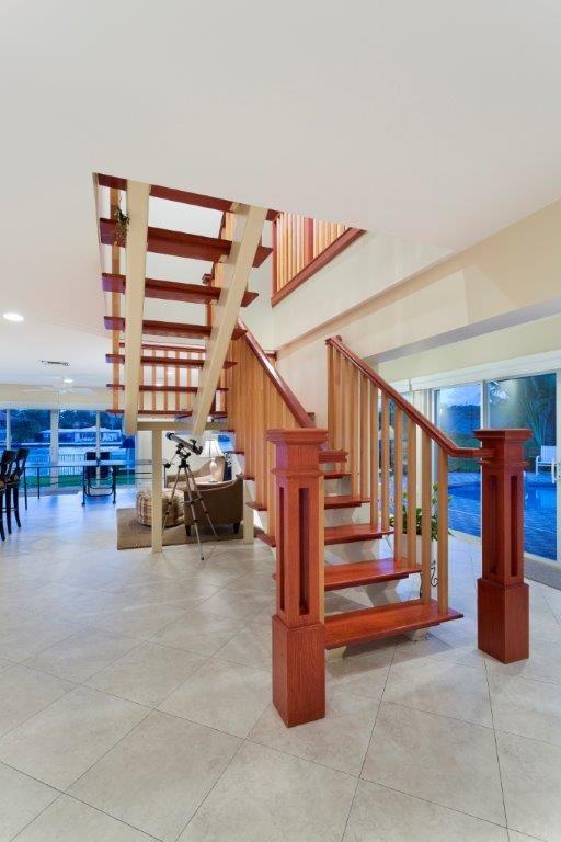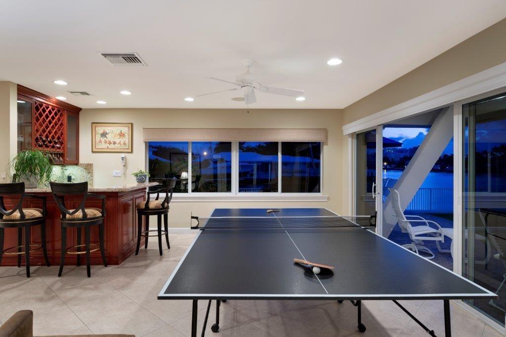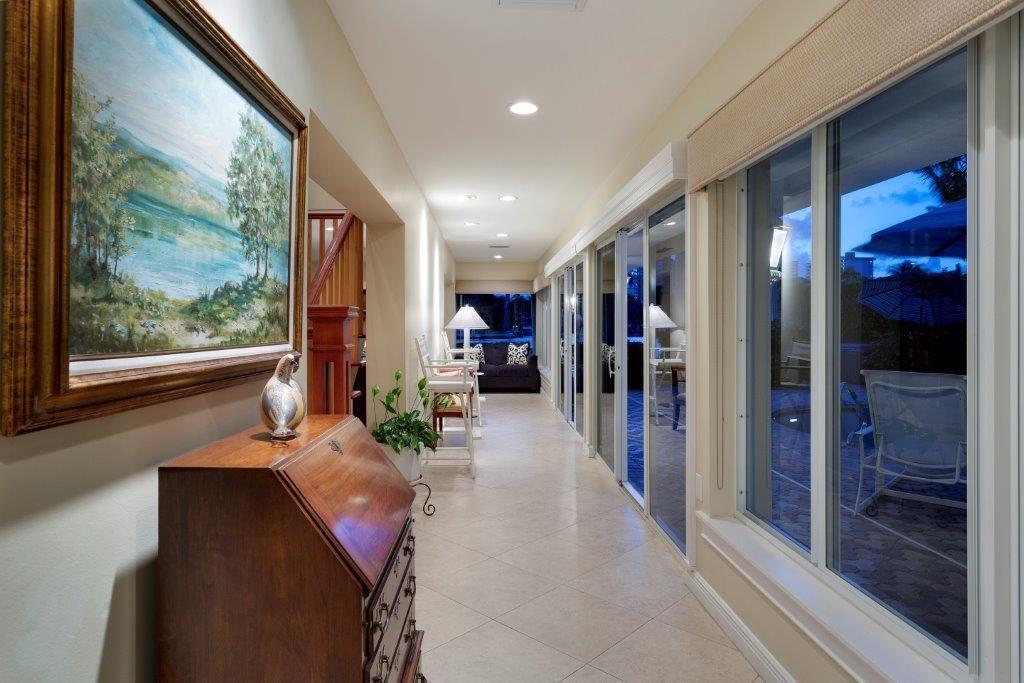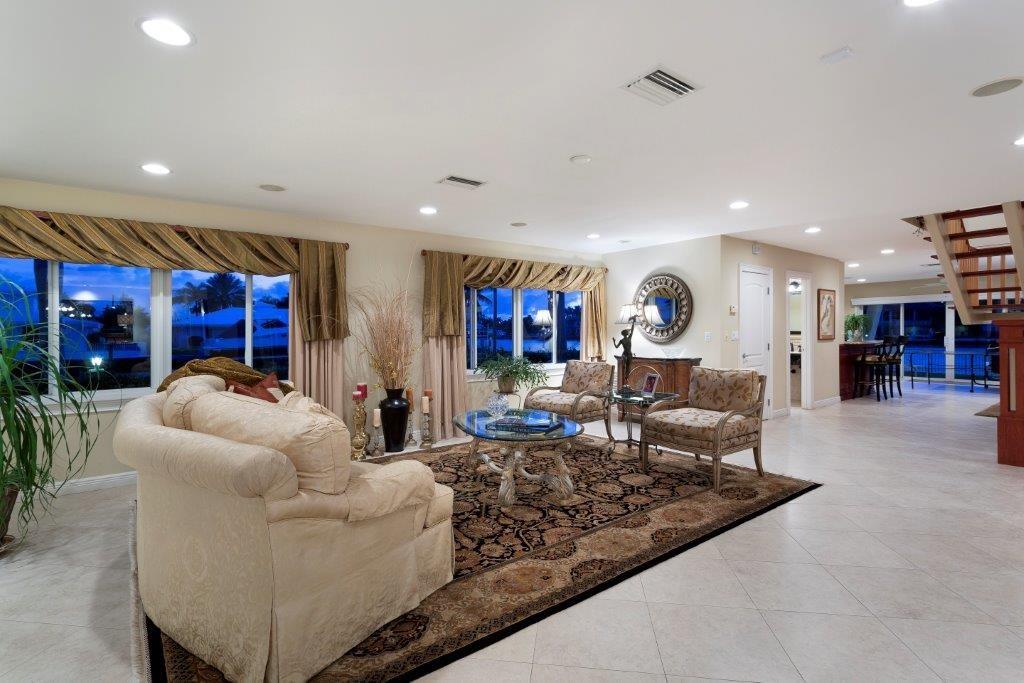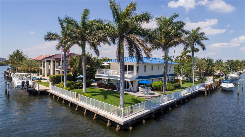 Intracoastal point lot home with 252 ft. of waterfront, including 169 ft. of straight line dockage on the wide, side canal. This two-story, L-shaped, transitional-style residence includes four bedrooms and three full and one half baths for a total of 5,442+/- well-utilized square feet, including a two-bay garage. Light tile floors unify the fluid open downstairs plan. The Key West-style metal roof, pool, large number of high impact windows and doors, and security system ensure a feeling of confidence.