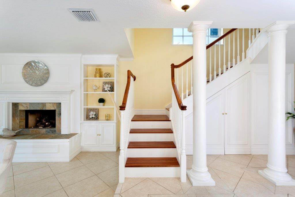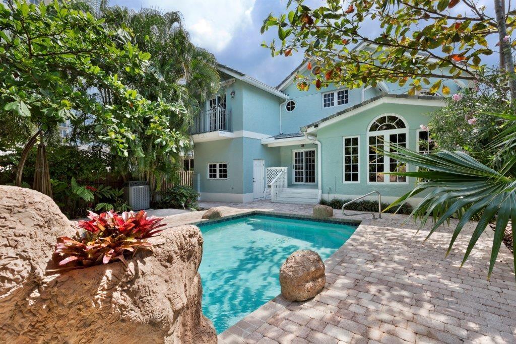 Encircled by lush tropical landscaping in a hedged, fenced yard, this charming two-story fully reflects our Florida lifestyle. A backyard patio and partially covered deck surround a private heated pool with an island-inspired rock waterfall. The front patio provides wide-ranging Intracoastal views, just steps from a private deeded dock that can accommodate a 40-foot boat. Garage is a one car tandem garage that comfortably accommodates 2 vehicles.