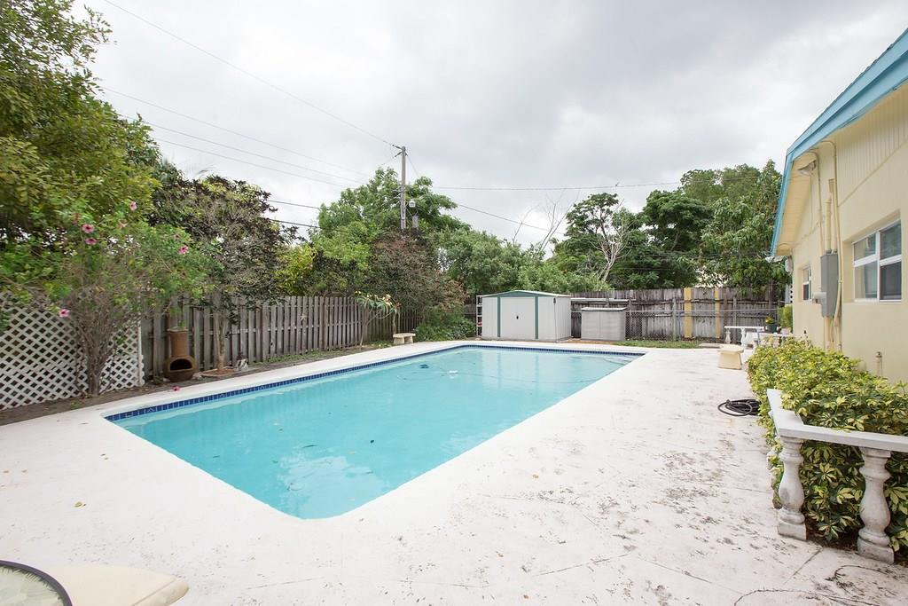 Clean, well taken care of 3 bedroom 1-1/2 Bath home! It has terrazzo flooring throughout, an upgraded kitchen equipped with stainless steel appliances, and upgraded bathrooms.There is a separate utility and laundry room. The home has an ample, fenced-in backyard with a beautiful deck, pool, and covered patio, making it a great home for families and entertainment. Must see!