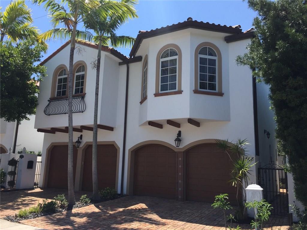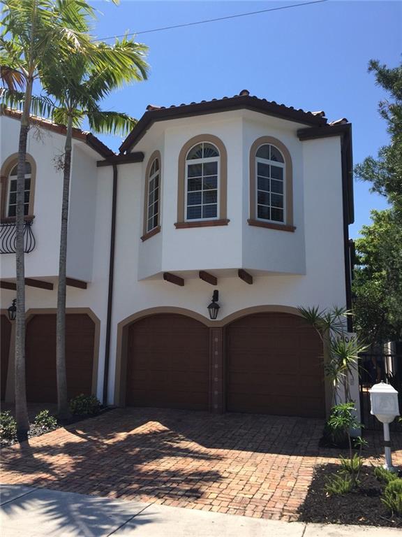 Beautiful spacious Mediterranean style townhome steps to Las Olas dining and nightlife! End unit in very small development of just 4 homes. Courtyard entry and open modern floor plan for entertaining. Stainless appliances and granite kitchen, 12ft. ceilings and light ceramic flooring down. Oversized loft w/ laundry center. Enter through double doors to master suite w/ double sinks, jetted tub, and enormous walk in closet. 3rd bedroom features a wall of high end built in cabinetry. City Living at its best!
