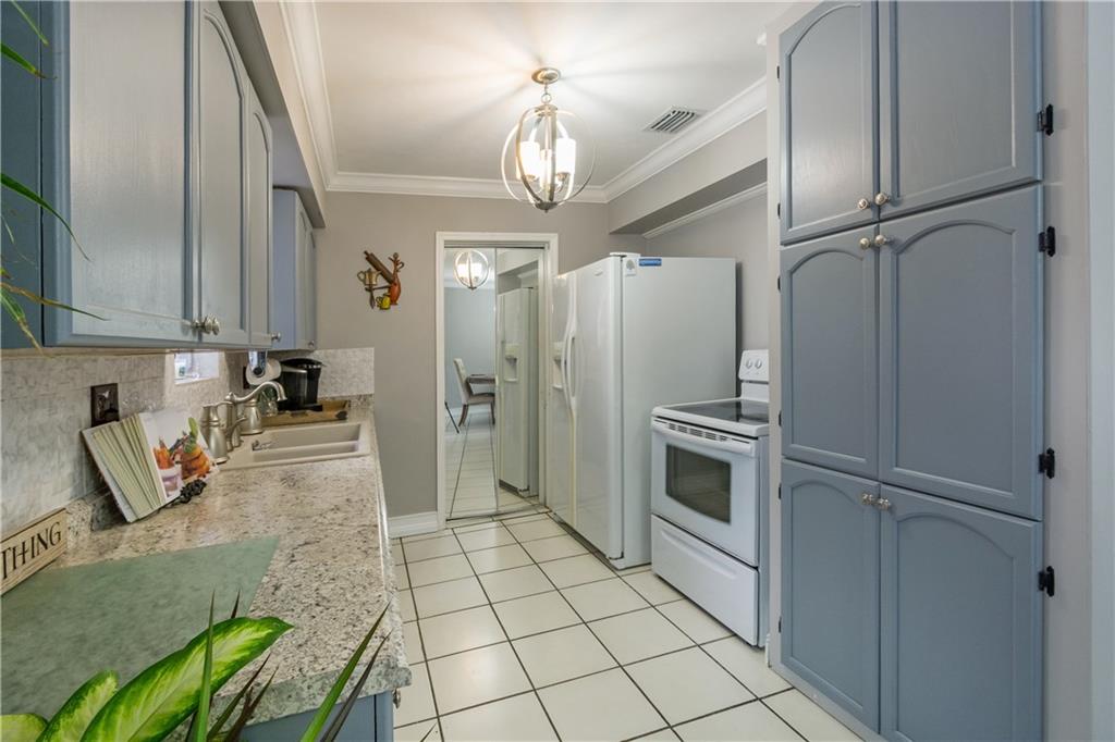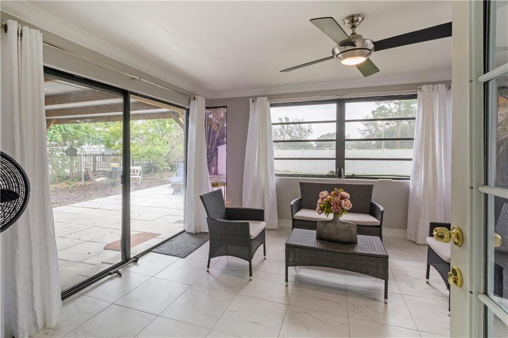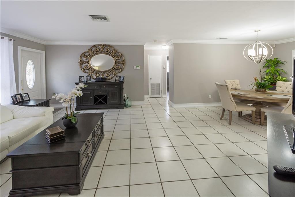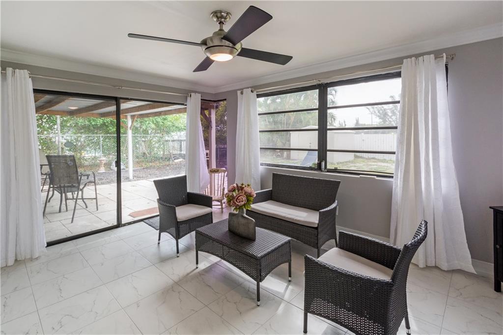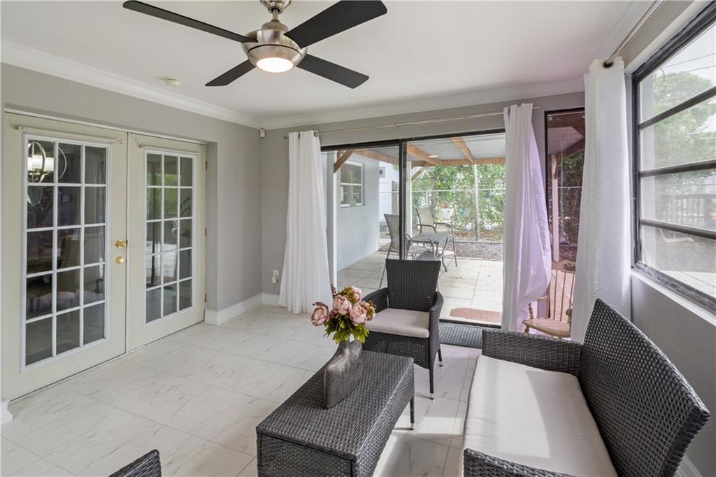Beautiful 3 bedroom 2 bathroom home has all new bathrooms & wood floors in all bedrooms. This designer remodel is sure to sell quickly. Freshly painted inside & out with soothing colors. New light fixtures, crown molding & baseboards. Spacious galley kitchen with glass tile back-splash. Sunny & bright Florida room overlooking a huge fenced yard. AC/ replaced 2013. Interior laundry room & plenty of storage. Split floor-plan with spacious bedrooms. Backs up to a park & located on quiet street. NO HOA fees.