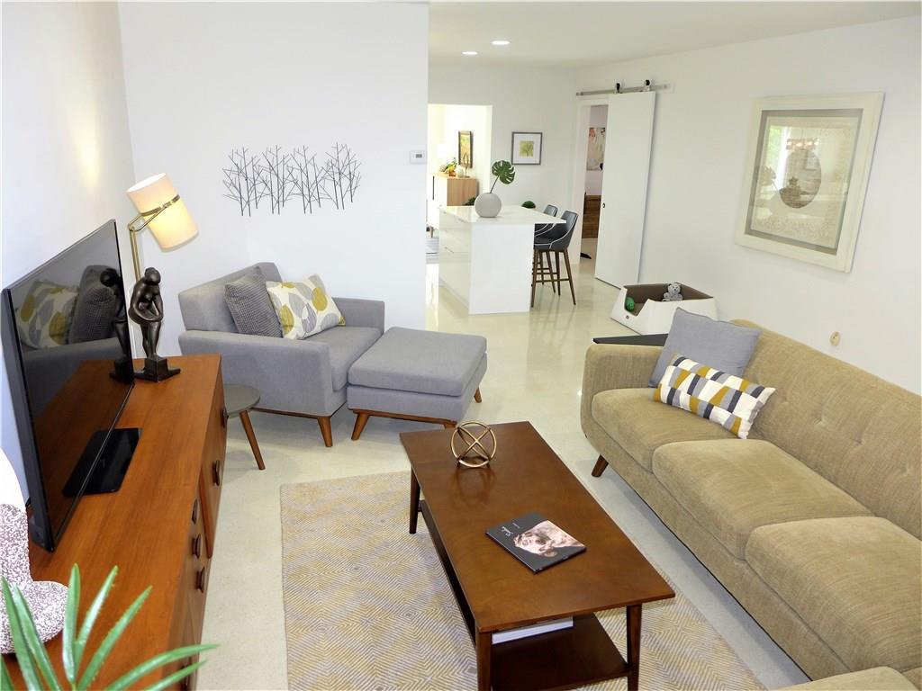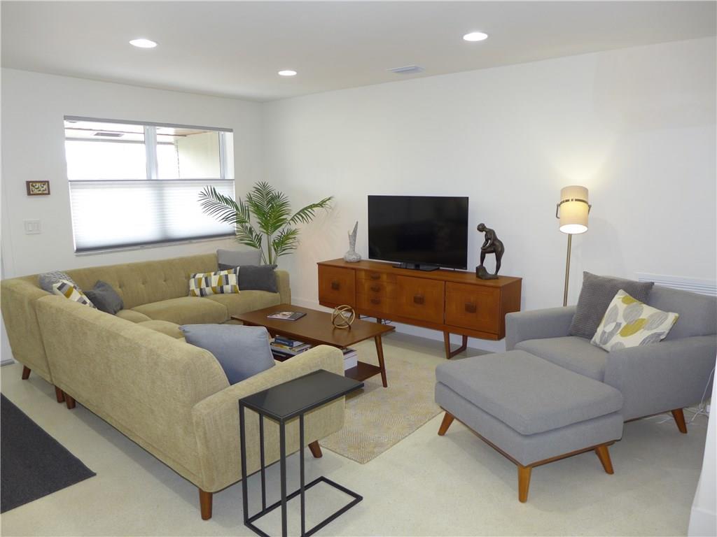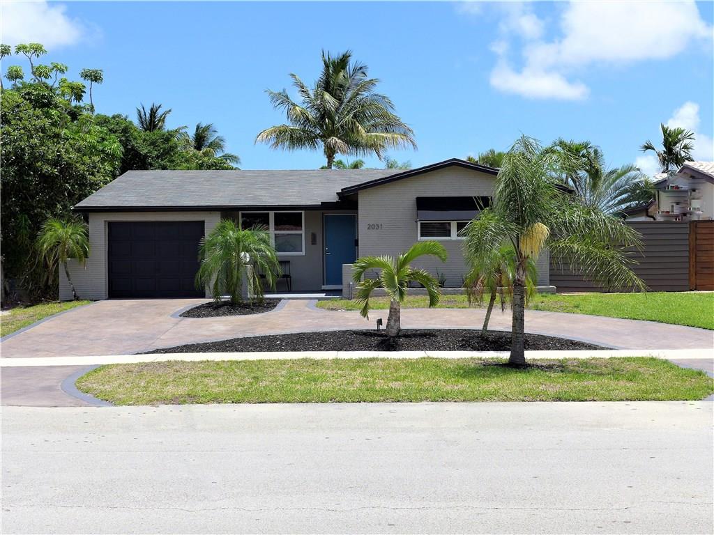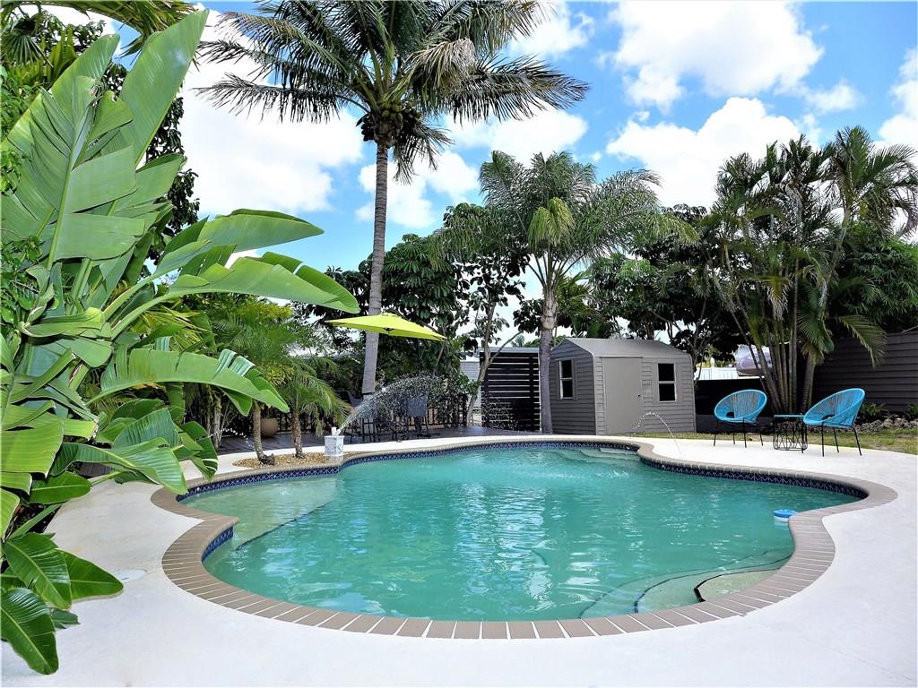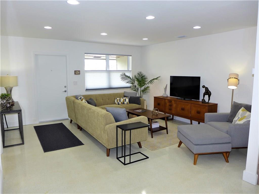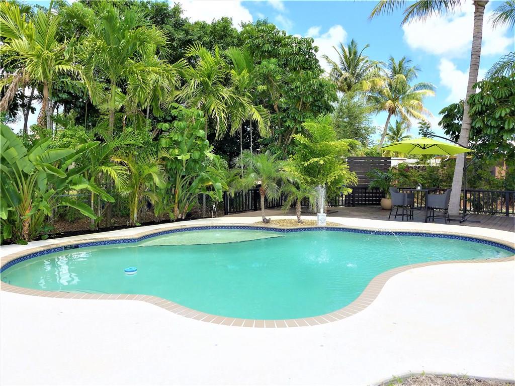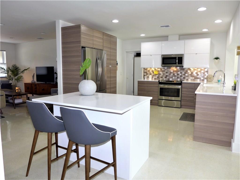 Spectacularly modernized w/incredible custom touches, terrazzo flooring & LED recessed lighting throughout! Natural light streams thru the impact windows & doors facing the large pool w/seating,lights, fountains, deck & huge yard! Kitchen & custom island boast soft close cabinets, pullout pantry, Corian counters, builtin electrical, SS appliances & so much more! Large bedrooms, walk-in closets w/cabinetry, luxurious bathrooms, circular driveway, spacious laundry room are just a few of the MANY upgrades!