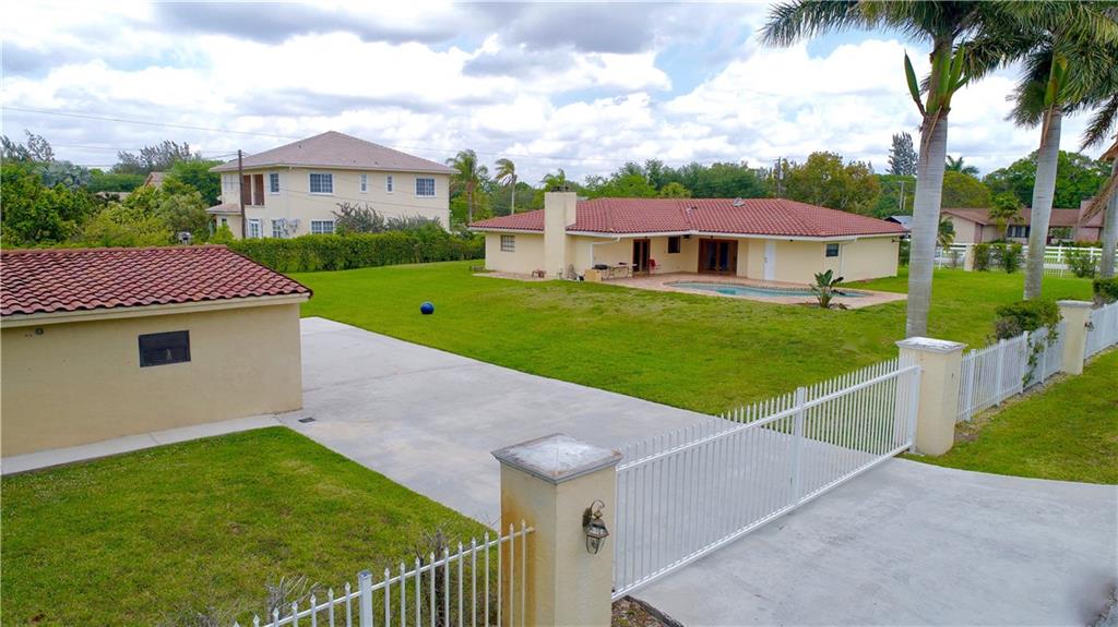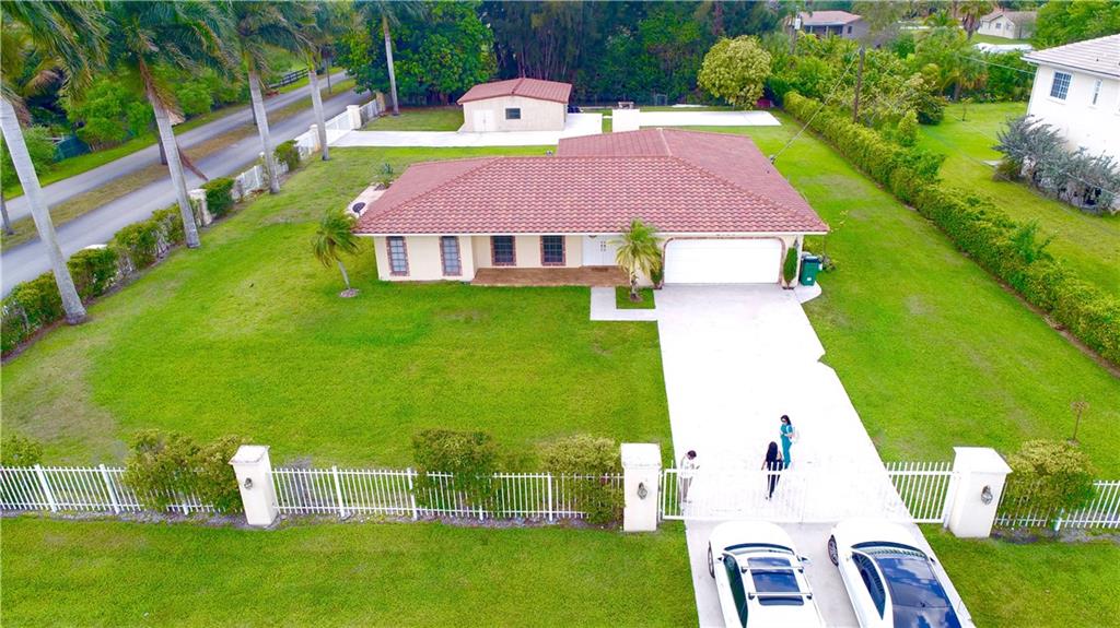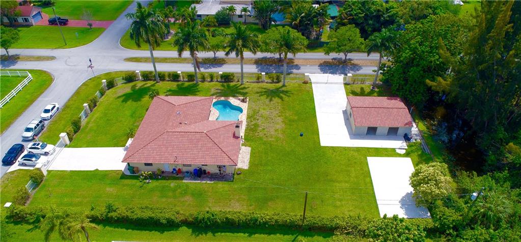 Country living with the luxury of city comforts, wonderful acre equestrian waterfront corner home. NO HOA. spacious open floor plan, wood floors,gated entry, renovated kitchen,beautiful family room with gorgeous fireplace with pool view. New roof in October 2010 and fully fenced in 2013. Second building with water and electricity that can be used as accessory building, office, storage or a Barn! Bring your horses-boat-RV... A+schools! Less than 3 minutes from Weston & Southwest Ranches best location.