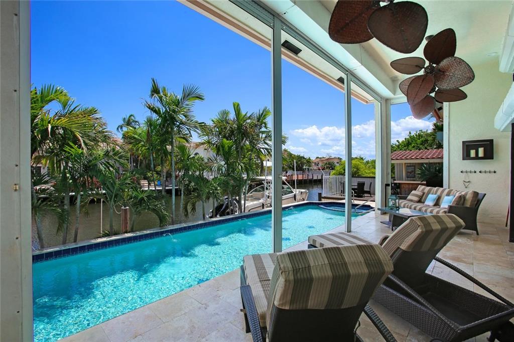 Stunning indoor/outdoor 3 bed, 2 bath waterfront home, located close to the beach. This designer home features custom woodwork, marble floors, wood shutters & a wall of glass doors for natural light. Open floor plan, gourmet kitchen, stainless appliances, granite & glass countertops. 14' ceilings, large living, dining & entertaining areas. Luxurious master bedroom suite and steam shower. Brand new air conditioner. Private 80' dock, wide canal, boat lift, pool, summer kitchen, lighting & sound system.