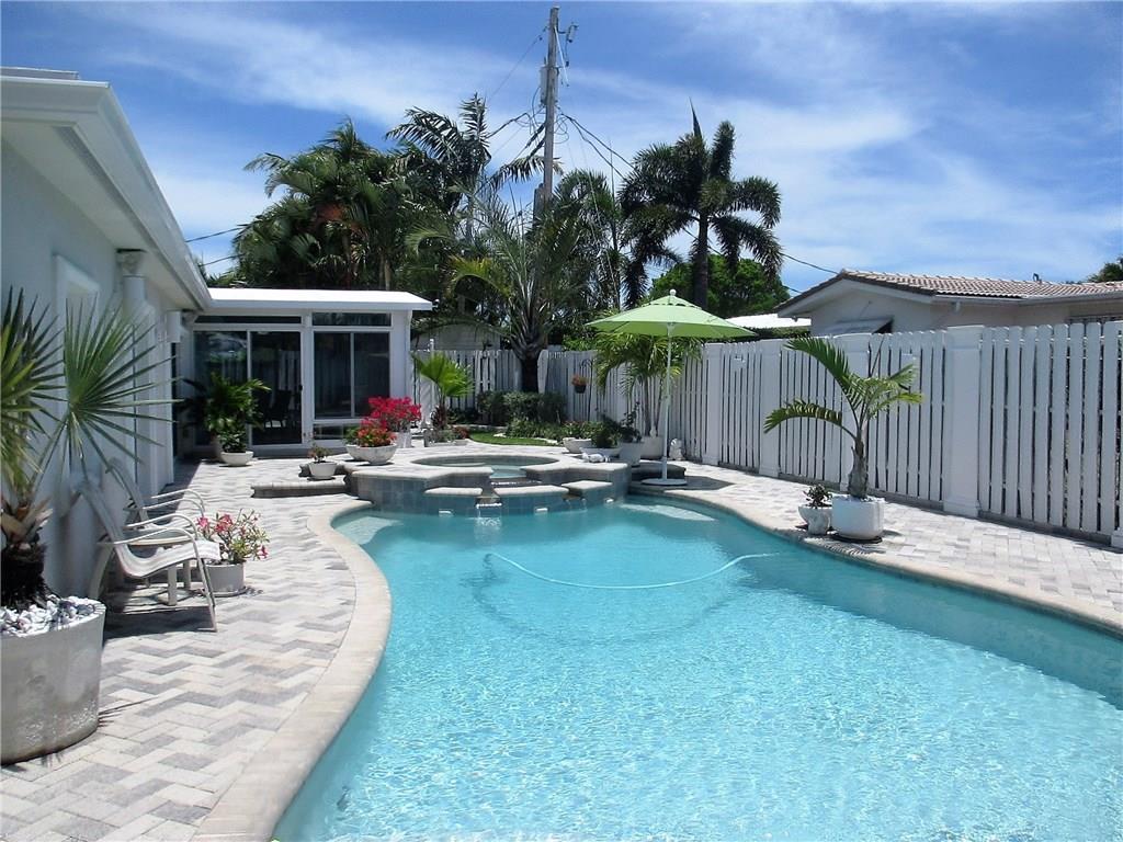 "Honey stop the car !" Look at this home ~ Spectacular remodeled corner home that boasts of impact windows & doors ,2100 sq ft ,split bedroom plan ,open living concept,lush landscaping, entertaining pool house with wet bar & ac overlooking pool area makes this space the best backyard in Imperial point !! Remodeled bathrooms ~ tile floors ~corian countertops ~inside laundryroom & sidewalks complete this picture !! You will be impressed with all the custom touches !!! See virtual tour !