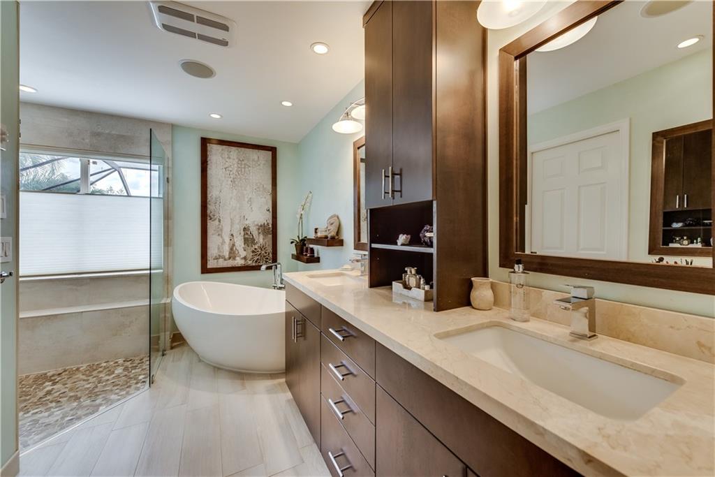 beautifully renovated 4/3 pool home. open concept kitchen,SS chefs appliances."A" school district. New roof (2009),New HVAC (2014) Hurricane windows and doors throughout. W/D +additional fridge. Water purification system.Removable child gate for pool. Master bath new, his &hers sinks,Alarm system, country club community, golf, tennis,gym,2 restaurants.HOA fees include CC membership $347 qrt. Many items included in sale, lighting and some furniture negotiable. see brokers remarks for showing.