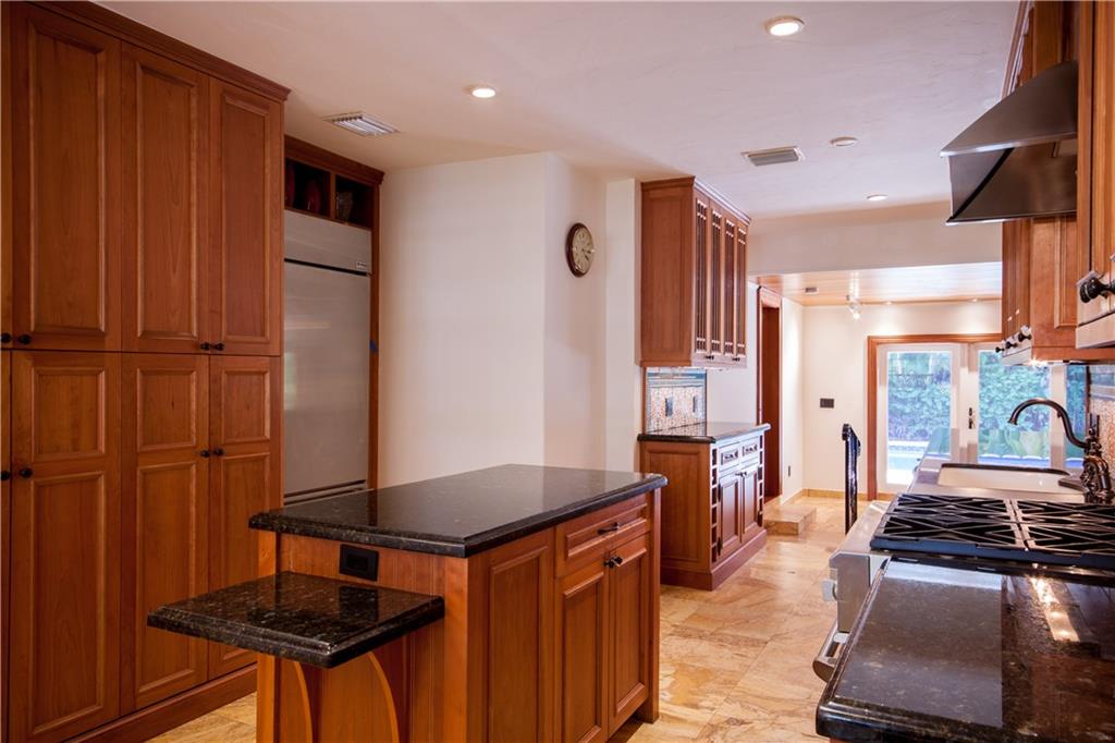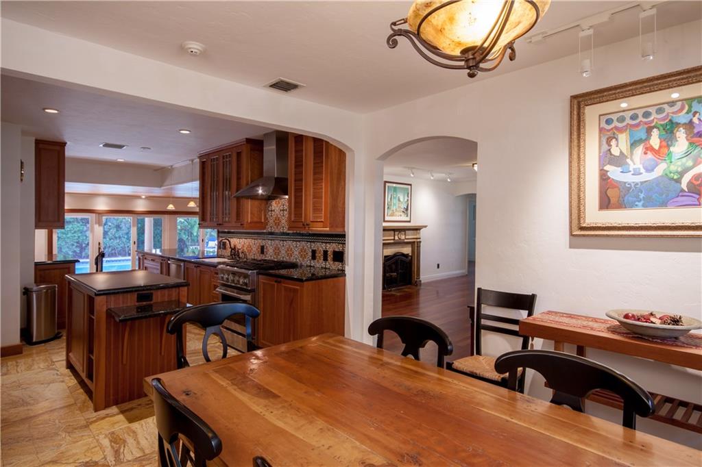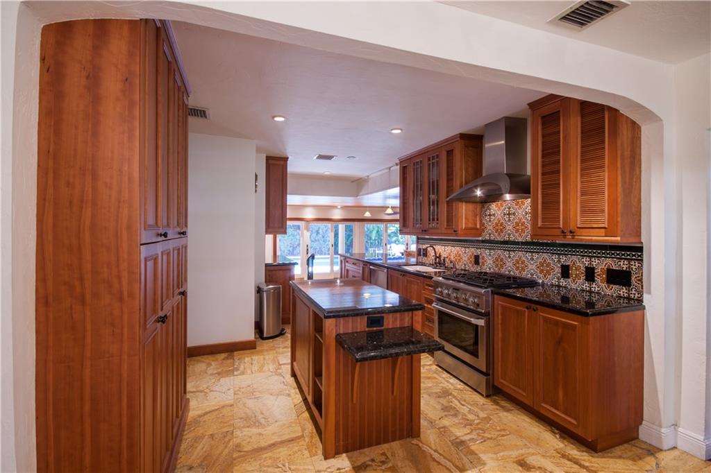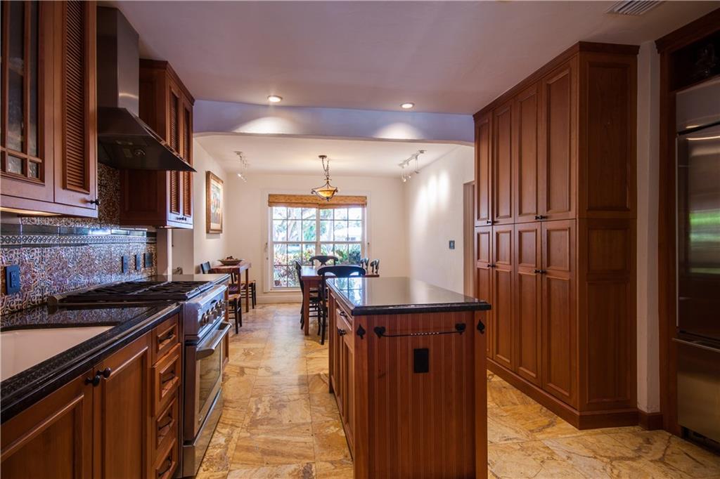 Renovated in 2007 including Plumbing, Electrical & Windows 3/3 Split Plan - Gourmet Gas Kitchen With Granite Wood Cabinets & High-End Stainless Appliances – Fireplace - Gas Generator - Five-inch baseboards, travertine, and hardwood finished flooring - solid wood doors, cedar wood- closets, LED recess lighting -designer light fixtures - wrought iron details and hand rails - Bathrooms feature hardwood cabinetry, granite tops, stone wainscot and replaced plumbing fixtures. - Coral Stone Tile Around Pool