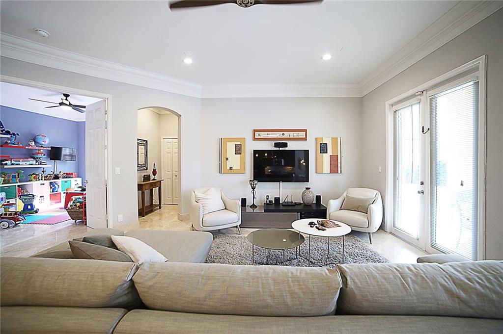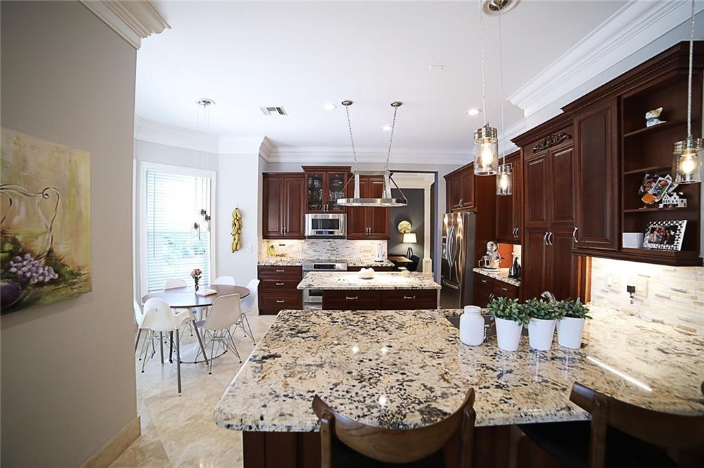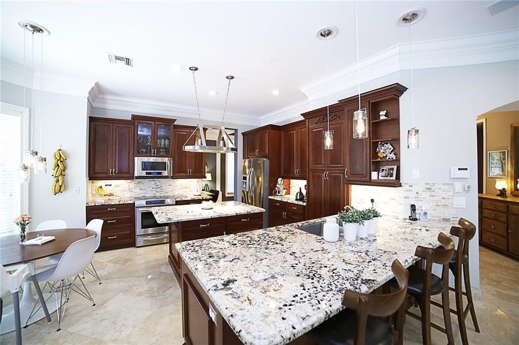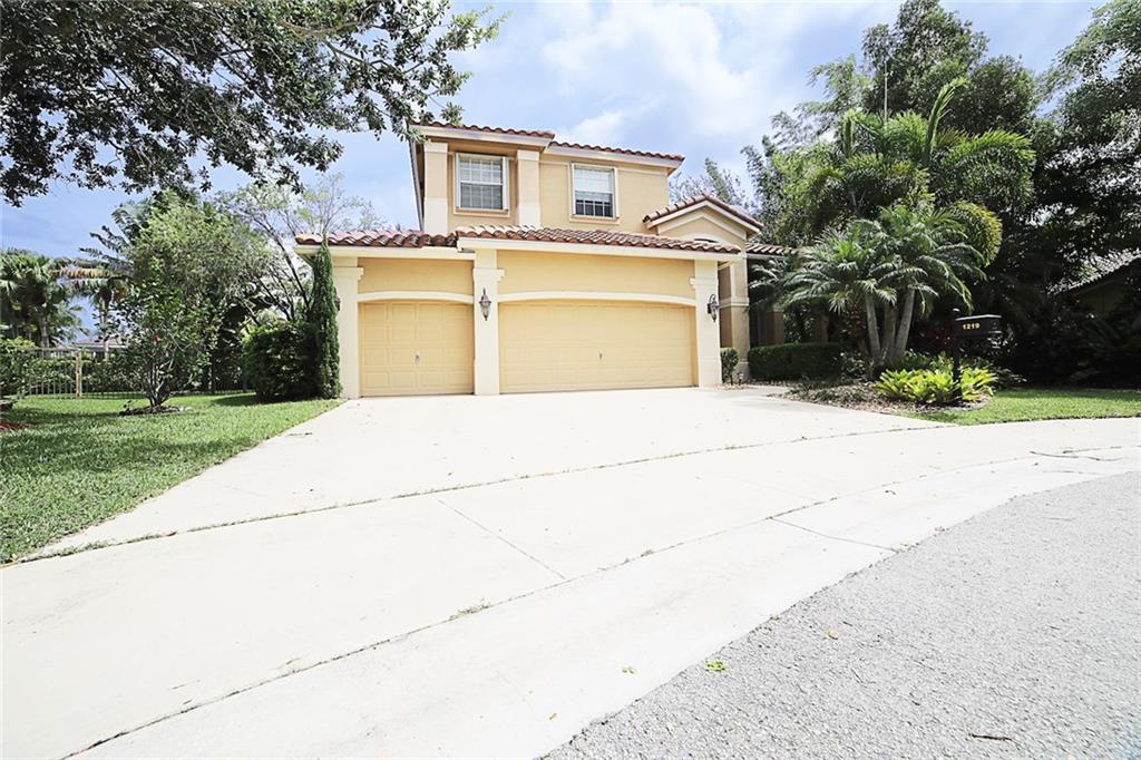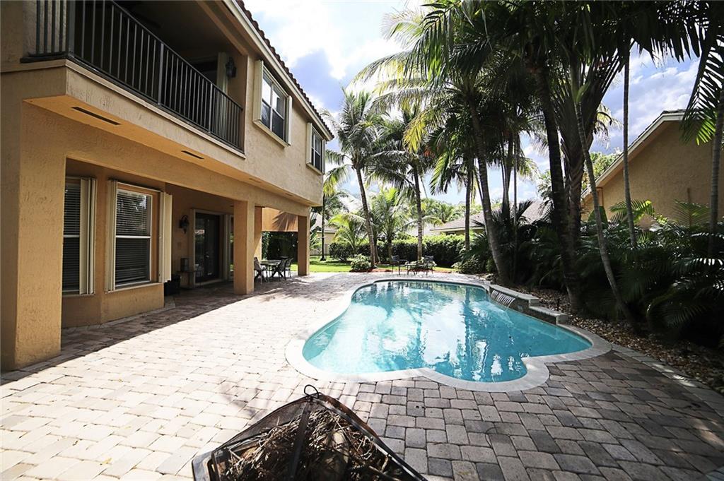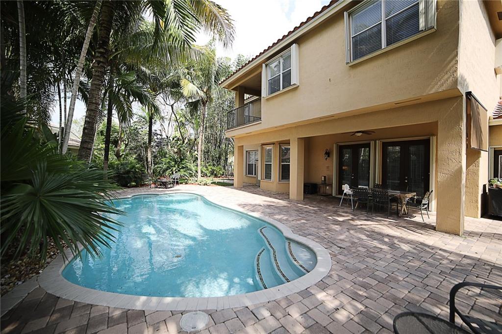 Enjoy this totally remodeled beauty that features five bedrooms in two stories. One bedroom, a Den and a full bathroom is in the first floor. Marble and wood floors in first floor. Granite counters and Stainless Steel Kitchen. This model is framed in a pie shaped expanded private lot located in a Cul-de-Sac. Recently updated A/C and water heater. Laminate floors in the second story. Renovated swimming pool. Accordion Hurricane Shutters. Guard gated community. Full of amenities.