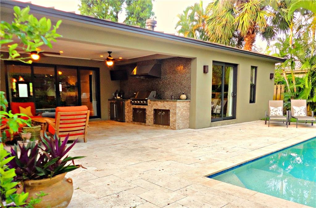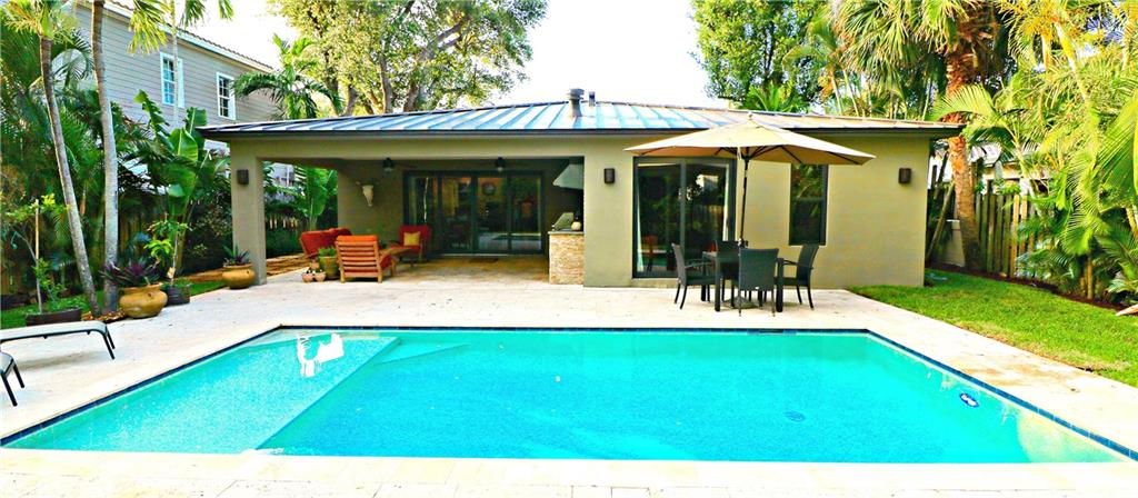 Mid-Century Modern STUNNER. Finished in 2014, linear, over engineered, completely remodeled/renovated with energy efficiency, safety and entertaining in mind. Featuring an open floorplan with 3 bedrooms, 2 baths, home office, summer kitchen, covered outdoor living space, and a heated "beach" entry pool. Boasting a plethora of custom finishes, designer touches, material/construction upgrades; close proximity to downtown, Las Olas, FtLaud Int'l Airport, I-95, the beach, this property is sure to captivate.