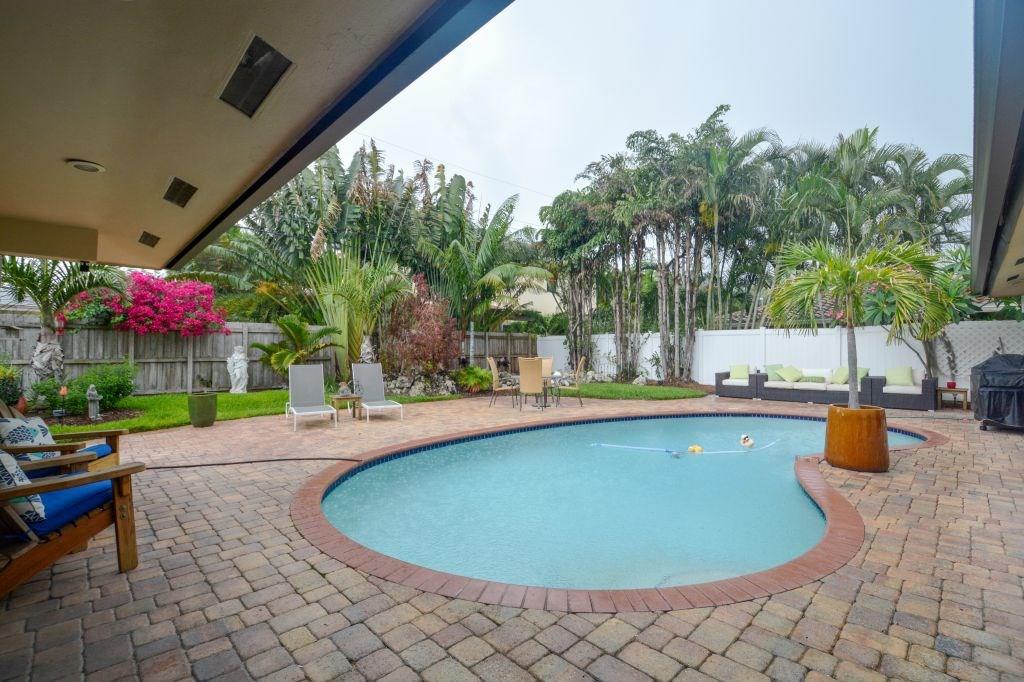 Enjoy ocean breezes in this spacious 3-3.5 single-family ranch in desirable Coral Ridge Country Club Estates; Gourmet kitchen featuring built-in stainless steel refrigerator, two dishwashers, two ovens, thermador range, new front loading washer and dryer. Master bath features dual sinks, steam shower with rain head, body sprays, two shower-heads Beautiful pool surrounded by a large patio great for entertaining over 100 people, gardens and generous grass areas for children and pets!