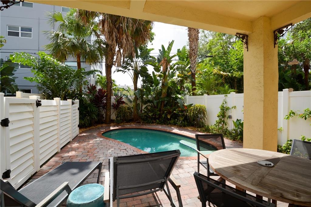 Located on a private, low-traffic street in sought-after Victoria Park, this lovely, 3 bed/3 bath townhome features a covered patio & private pool surrounded by lush landscaping. With only four units in this development, the property offers ample privacy. Two-car garage, great, open floorplan w/ lots of natural light, granite kitchen, tile throughout, high-quality Berber carpeting in bedrooms. Beautiful wooden staircase leads to second floor loft. Walking distance to Las Olas, steps from Holiday Park.