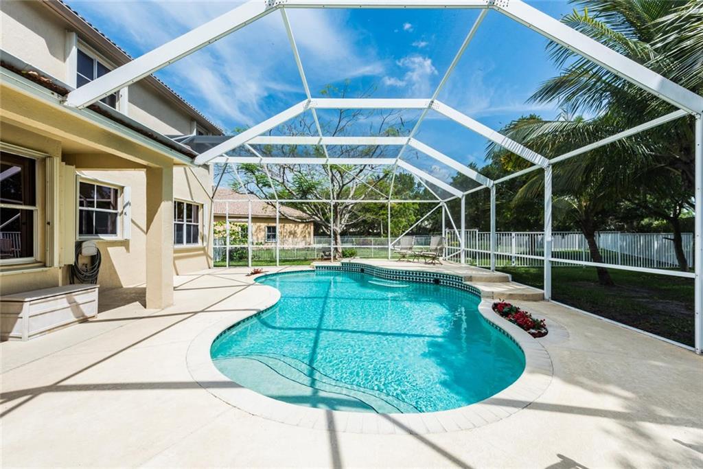 Big price reduction on lovely 5 bdrm/4 bath home+office/den/optional 6th bdrm on a 1/3 acre lot with no backyard neighbors on a quiet double cul-de-sac street! Enter the home to soaring ceilings and a view of the pool & tree shaded yard. With 1 bdrm & full bath on the 1st floor and 4 bdrms on the 2nd, there is plenty of room for all. Kitchen offers tall white cabinets, black granite counters & brand new stainless steel appliances. Close to all A rated schools, parks, library, restaurants & shopping