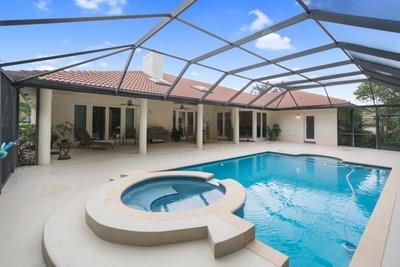 Immaculate, Bright & Beautiful!Updated 5 BD/4.5BA+Office pool home w/huge covered screened pool patio on private lot. New Impact Windows, Incredible Kitchen w/42”White Cabinetry, Granite Counters, Center Work Island, Double Ovens & Separate Breakfast Area. High Volume Ceilings, Porcelain Floors, Crown Molding, Fireplace, Updated Baths, Triple Split Floor Plan, Open Living Areas, Plantation Shutters & Lg.BDRMS. Newer Roof, 3 Zoned A/C, Heated Pool/Spa Resurfaced, Beautifully Landscaped & Pristine Condtion.