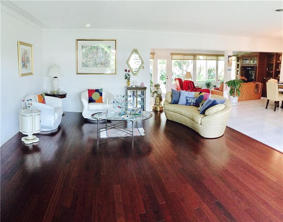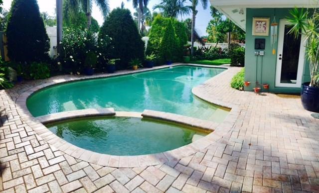 Coral Ridge Country Club Estates. Corner home in move in condition. Split floor plan. Master bedroom has 2 walk-in closets. White kitchen completely remodeled with induction stove and convection microwave. Built-in-entertainment unit with Bose surround sound. Wet bar in dining room. Impact windows and doors. Lush garden with private pool and backyard area with a tiki area! Walk to beach, restaurants and shops. Roof and stainless steel appliances under warranty.