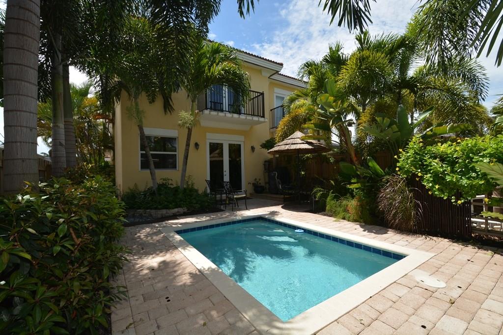This FEE SIMPLE 2 story, 3 bdrm, 2 1/2 bath townhouse w/ a private pool is located the heart of Lake Ridge. Exquisitely appointed designer features include high ceilings w/crown moulding, granite & stainless steel, porcelain and carpet, extra wide hallways, 2 car garage, impact windows, wired for alarm. Master bath is adorned w/a soaking tub & dual sinks. Juliette balconies. Impeccable condition. Tropically landscaped & fenced for total privacy. Close to Wilton Drive, Victoria Park & Ft Lauderdale beach.