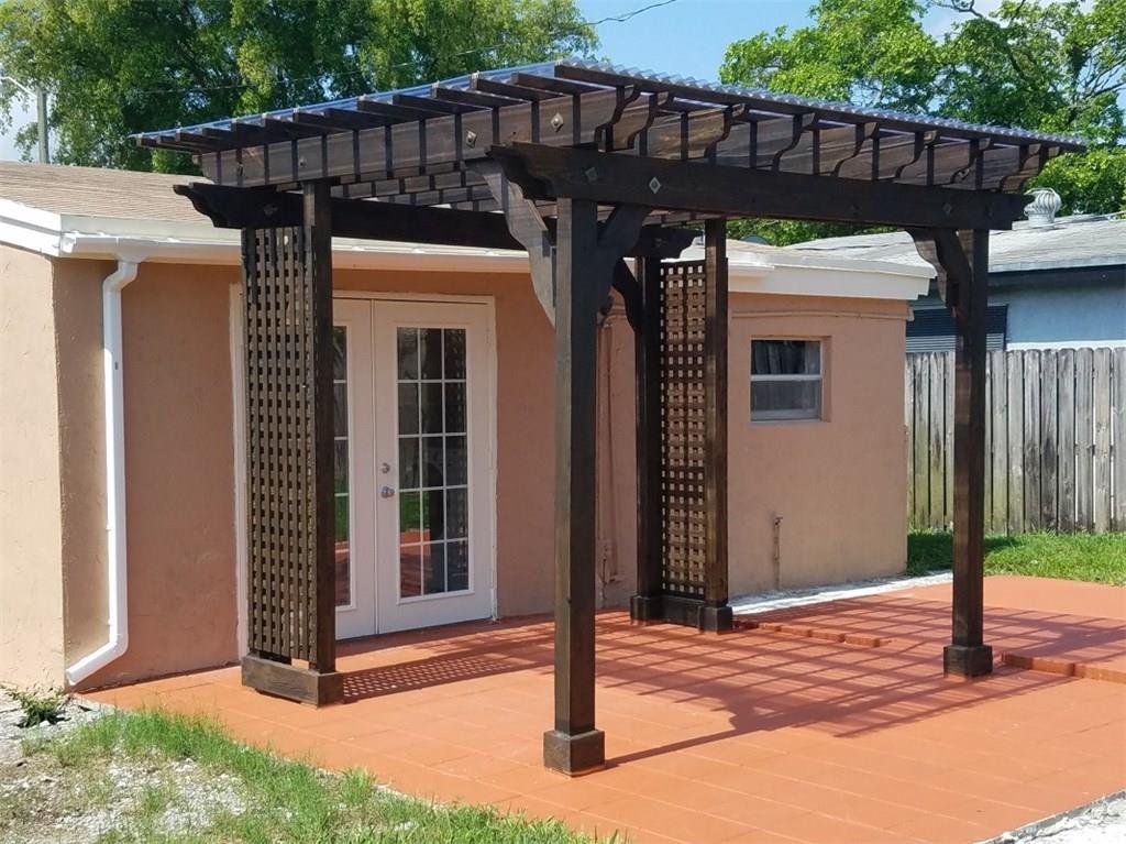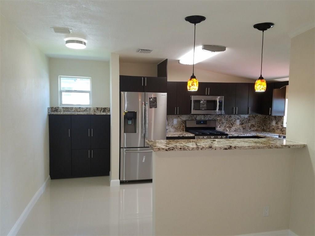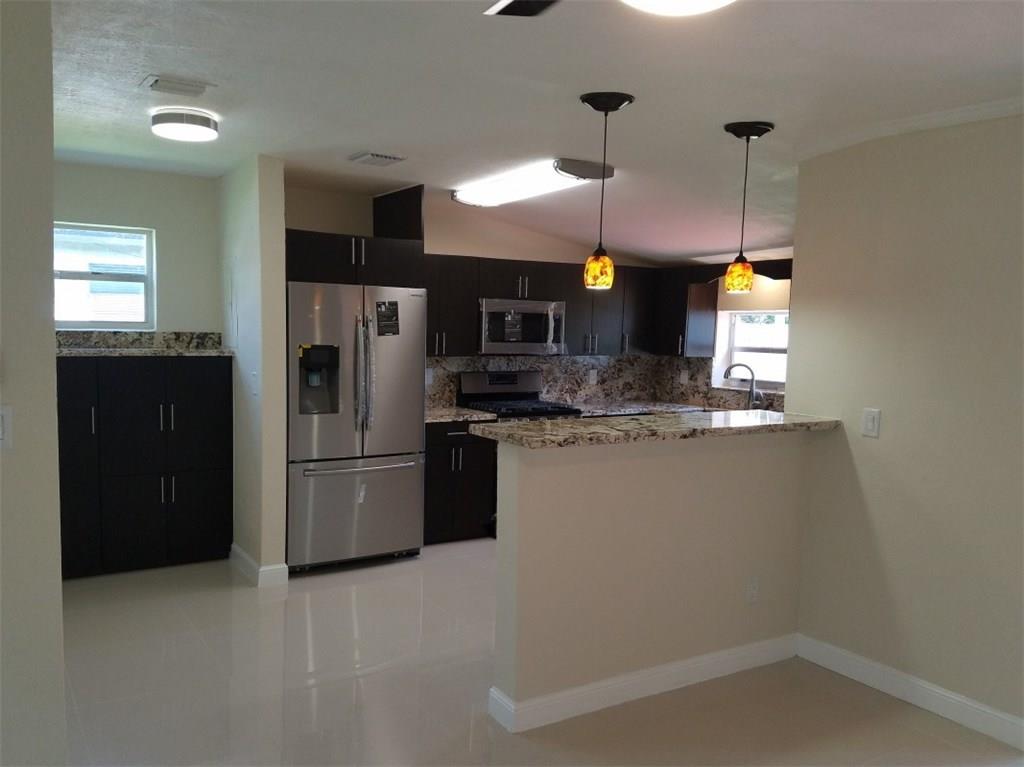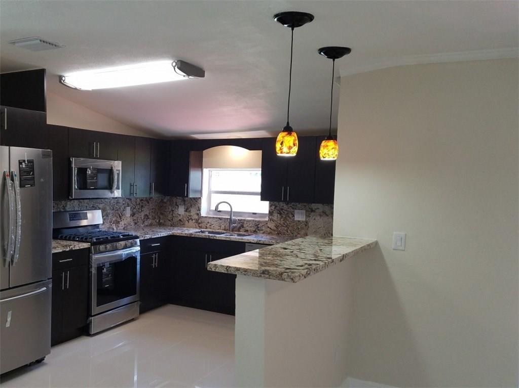 Renovated 3 bedroom/ 2 bath single family home with bonus room suitable for office or family room. NEW ROOF (permitted) and remodeled kitchen with new cabinets, quality granite counter tops and stainless steel appliances. Beautiful flooring, including new 24" porcelain tile throughout. Master bedroom includes redone bathroom. Central A/C, fenced w/gates on both sides, sprinklers, Shed, and new Pergola. Must see!
