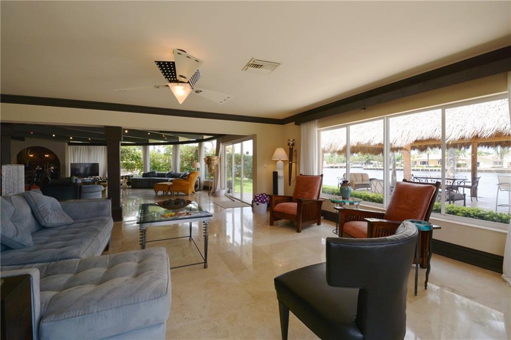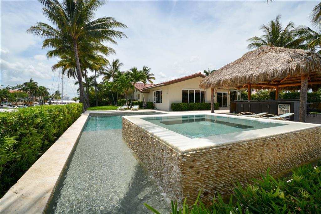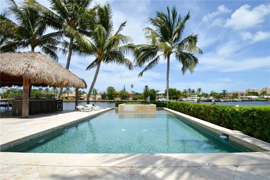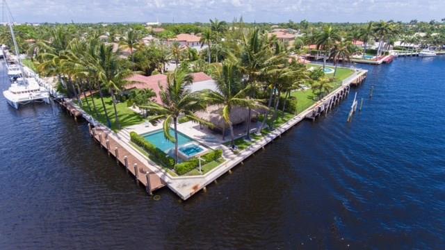 One of the most spectacular ICW point lots available with endless water views. This stunning 4bd/4ba pool home on a lot over 16,000 sq. ft. is seconds to the Hillsboro Inlet with 250 ft. of water frontage & two docks for your mega yachts. The extra large great room and gourmet kitchen is positioned perfectly with expansive water views. Entertain under the custom tiki hut with lounging and bar area or enjoy the beautiful resort style pool and spa as you watch the boats go by