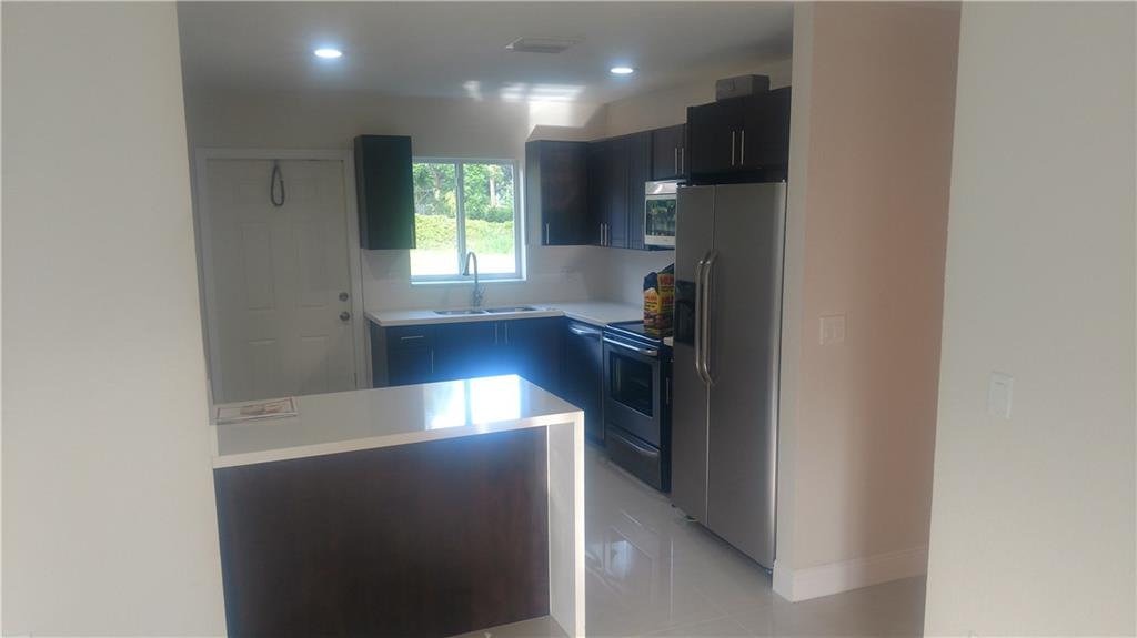 New construction, beautiful 3 bedroom 2 bath in desirable Fort Lauderdale area. Upgraded kitchen, Quartz countertops, and waterfall bar. Upgraded bathroom and custom wood cabinets. Upgraded stamp concrete driveway. Hurricane storm shutters. All stainless steel kitchen appliances. Washer and dryer included. Upgraded tile 24 x 24 throughout whole house. Walk in closets. Must see, won't last!!!!