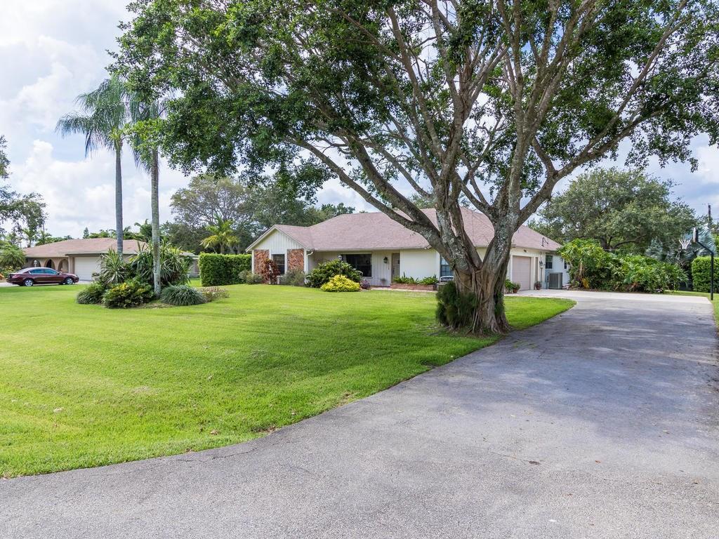 Immaculate 4/2 on a 35,024 sq.ft. fenced and beautifully landscaped lot! Lovely built in pool with a fountain and a child safety fence. Interior features a newer 4 ton Trane A/C unit (lifetime warranty), bamboo floor in guest bedroom, white shutters in 3 bedrooms, 6 panel wood doors through out, 8 Hunter ceiling fans, hurricane panels, alarm, Updated electric panel, Culligan reverse osmosis under sink, newer irrigation pump, CITY WATER, NO HOA! Bring your horse, RV or boat! "A" SCHOOLS!