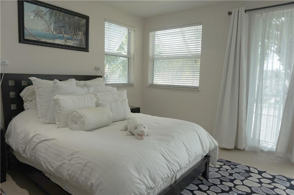 Sunlight floods this spacious 2100sf+ corner town home! Impact windows & doors keep the home quiet, & the tall wood fence gives the patio a very private feel. Built 2009, SS appliances 2012, kitchen pantry, open floor plan w/ french doors leading out to patio/BBQ area. 12 foot ceilings, balconies off bedrooms. Jack & Jill bath. Very large master with balcony, 2 walk ins, jacuzzi tub & dbl headed large shower in master bath w/ double vanity. 2 car garage & 2 more parking spots in driveway. W/D 2012.