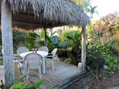 Looking for that Key West feeling to escape from the stress of work? This adorable 2/2 bungalow can be your sanctuary! It boasts a huge backyard where you can sit out on your Adirondack chairs under your very own Tiki Hut and Koi pond, aviary, multiple shade trees with tropical plants, coconut palms and orchids. There is also a cement slap on the east side of the house to park your boat and plenty of room to build a master suite addition. RUN to see this charming home before someone else snaps it up!