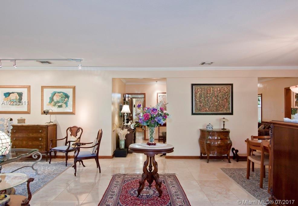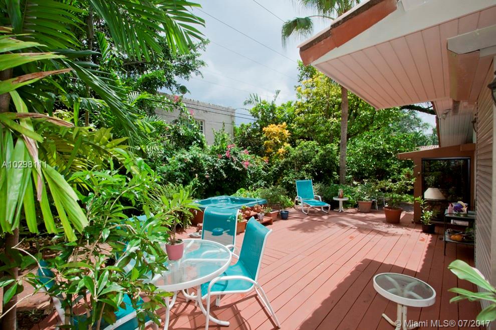 Gracious home located on tree-lined Castile Ave is walking distance from the Granada Golf Course and Coral Gables Country Club. An elegant foyer leads into a spacious marble-floored formal living and dining great room area. An additional family room and adjacent bright and inviting skylit sunroom with window-lined walls are the perfect generous space in which to entertain. Off the family room, the kitchen features wood cabinets and a breakfast nook with a bay window overlooking the meticulously maintained gardens. The master suite boasts a huge walk-in closet and french doors that open onto a wooden deck where you can enjoy the lush backyard and jacuzzi. Two car garage, large lot with room for a pool and an excellent location. SqFt per owner/architect.