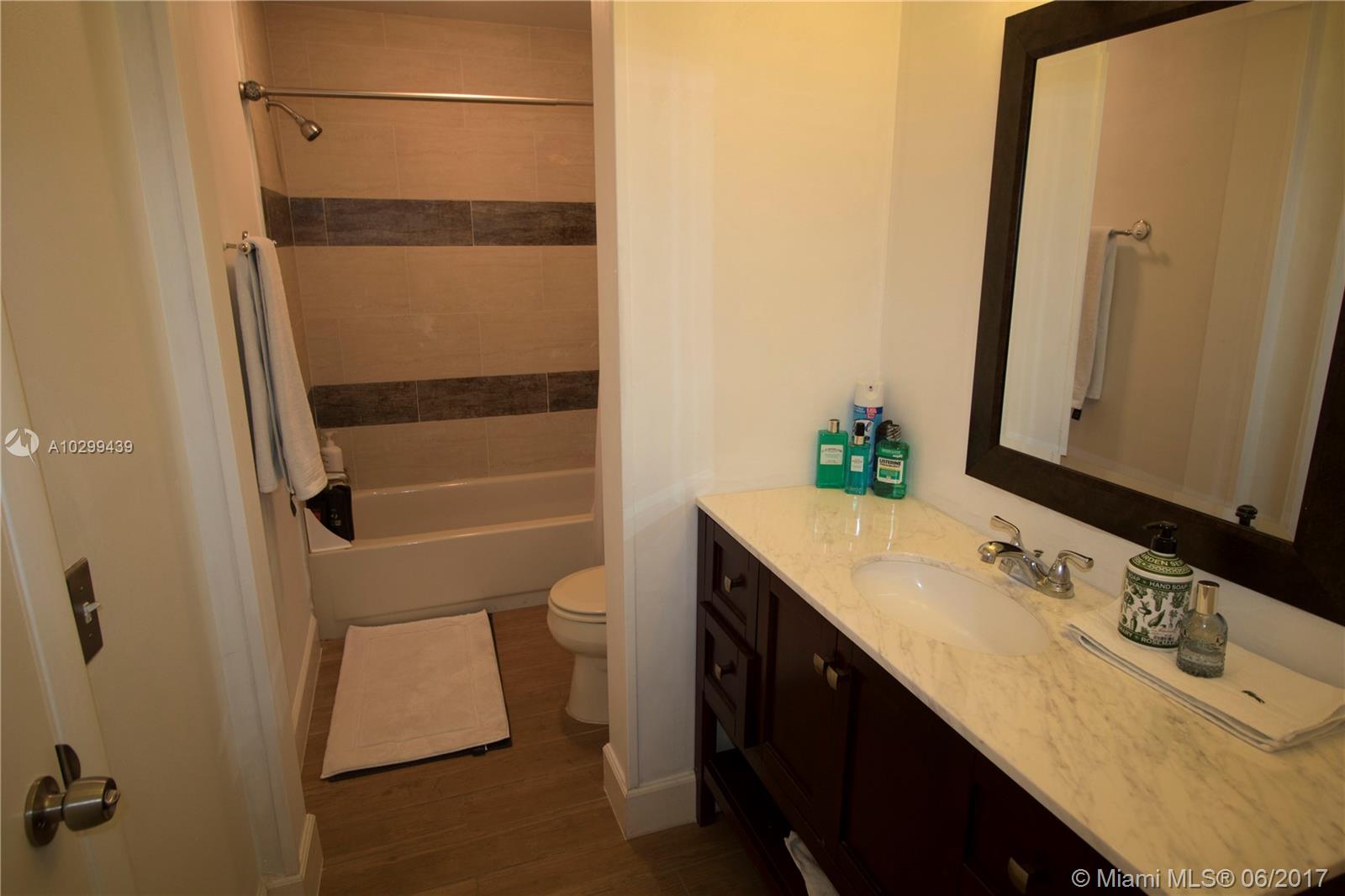 Impeccably remodeled & charming 3/3 in Doral Oaks. Inviting covered patio space welcomes you home. Rich wood-look tile floors compliment updated kitchen with breakfast nook & Electrolux stainless appliances. Spacious open living & dining area plus a full bedroom with en suite downstairs. Pamper yourself upstairs in the large master with deep walk-in and stunning bath. Bedroom 3 upstairs features private en suite bath, all the rooms feel like masters in this wonderful home! This one is going, going, gone!