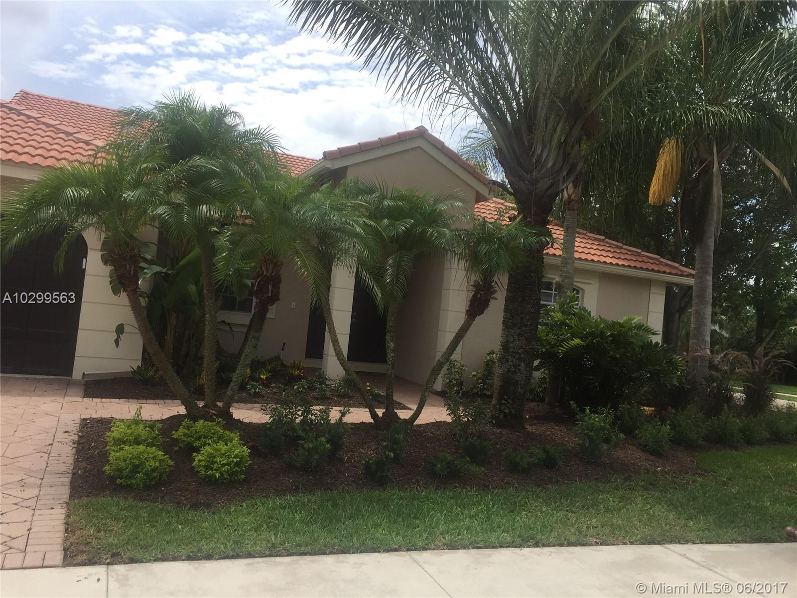 Beautiful home in one of Weston's most desirable communities, The Lakes. Home is on a corner lot, beautifully landscaped, with a fenced in gorgeous pool, in a private and quiet area. Has a large screened in patio with a beautiful hot tub conveniently located outside the master bedroom. All stainless kitchen appliances brand new & warrantied. AC and water heater newer & warrantied. In walking distance from Publix shopping center & fabulous A+ schools - Eagle Point, Tequesta Middle, & Cypress Bay.