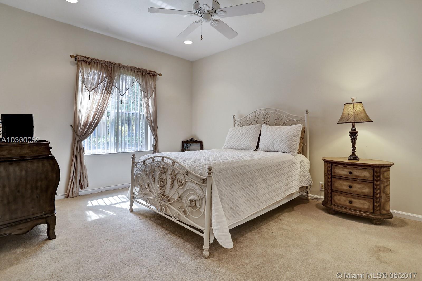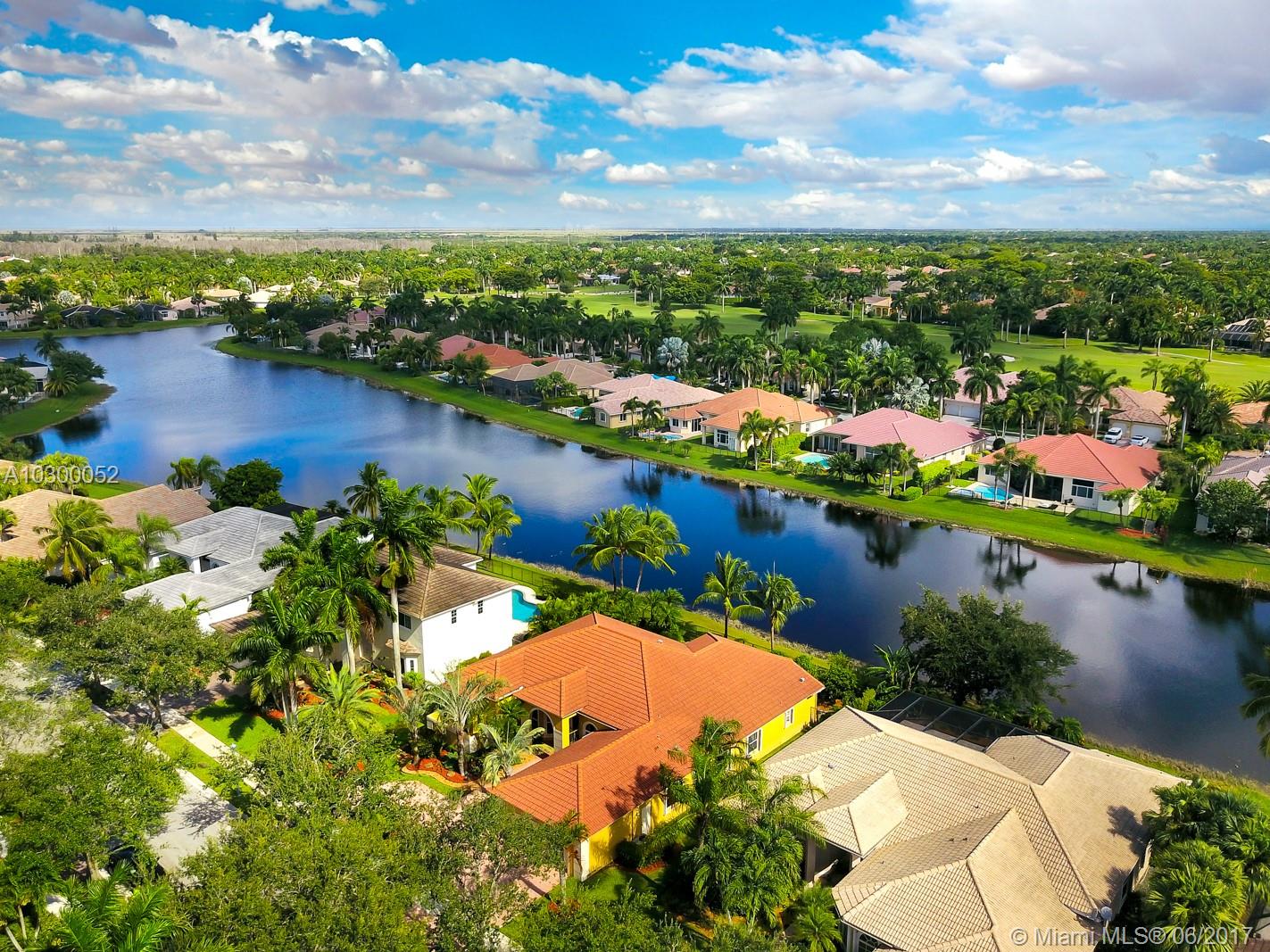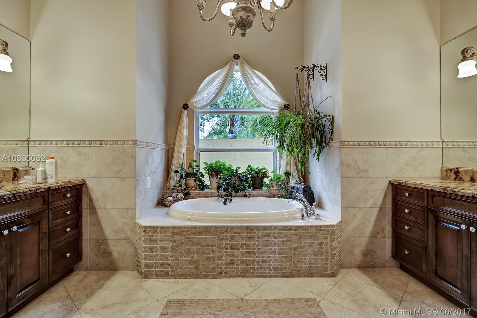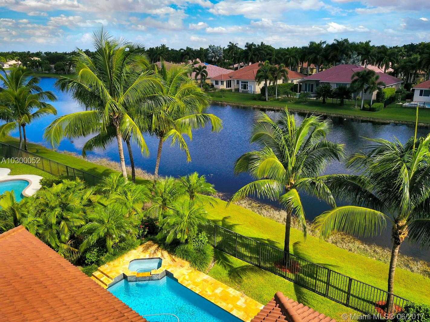 Lakefront custom built Greenwich model, almost 3000' sq. of luxurious and upgraded living area w. 4BR, 3FBA + Den. Crema Marfil marble floors throughout the social areas. Gourmet kitchen features custom Quartzite countertops (Blue Louise), 42” wood cabinets, under-cabinet lighting, stainless steel appliances, including Sub-Zero refrigerator/freezer, KitchenAid double oven & microwave, warming drawer & dishwasher. Impact glass front & rear doors and windows, accordions shutters on the sides. Tiled roof & gutters installed in 2007. Gold travertine pool deck & recently resurfaced saline chlorinated pool & spa with waterfall feature. Fully maintained dual zone, multi-speed 18.5 Seer A/C units. Hybrid wired and wireless security system with 2 remotes and digital dialer. Lake fed irrigation.