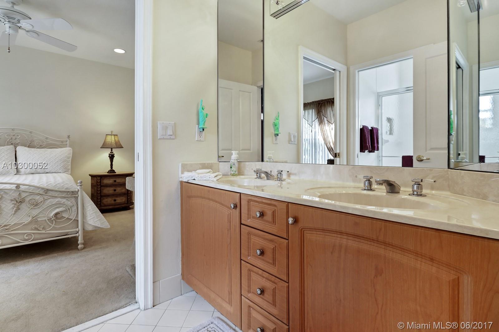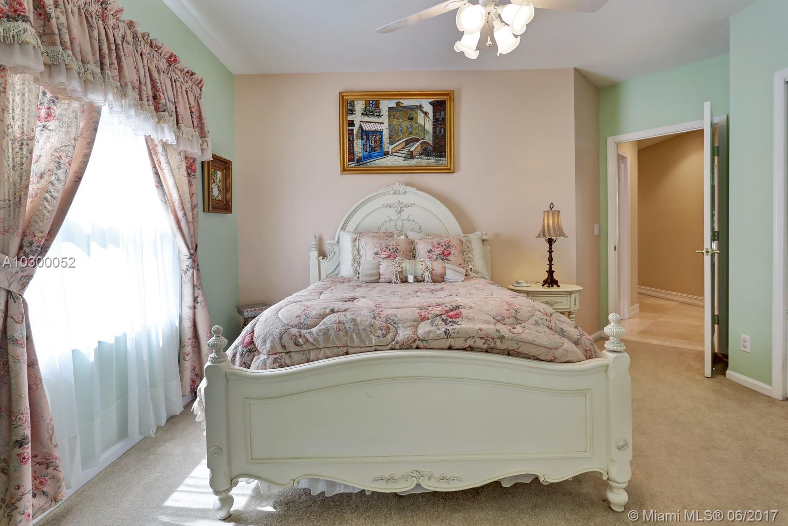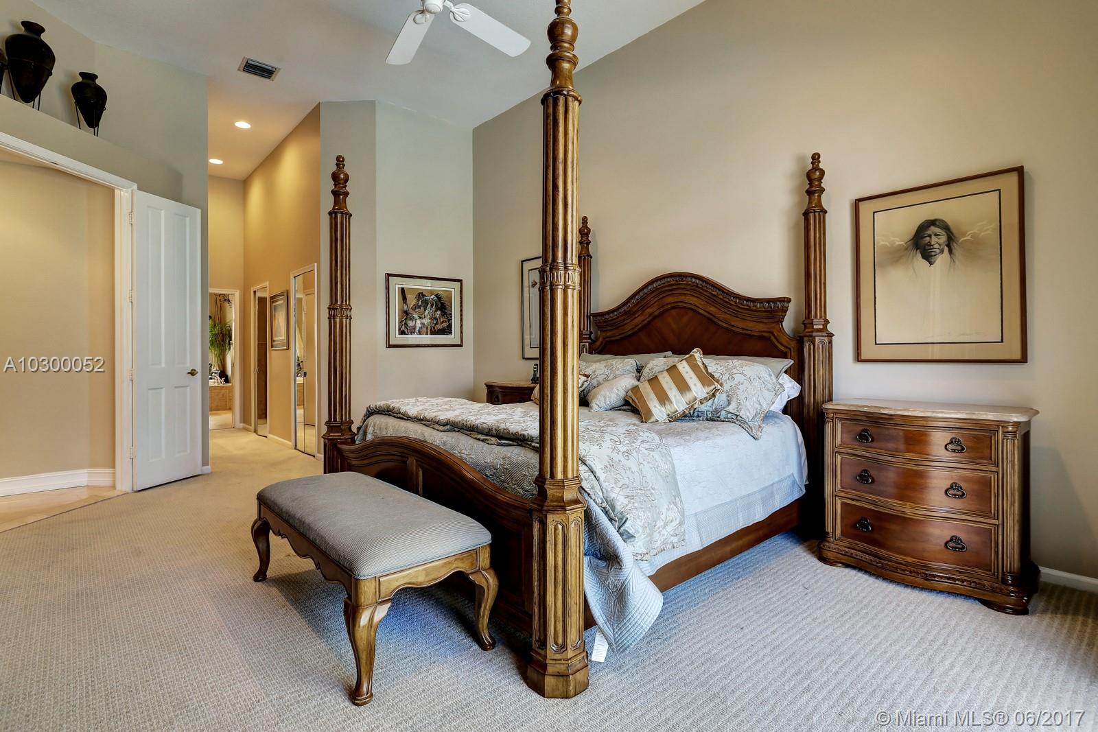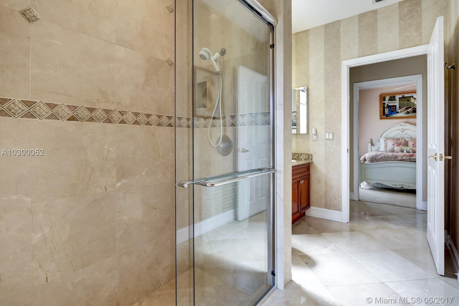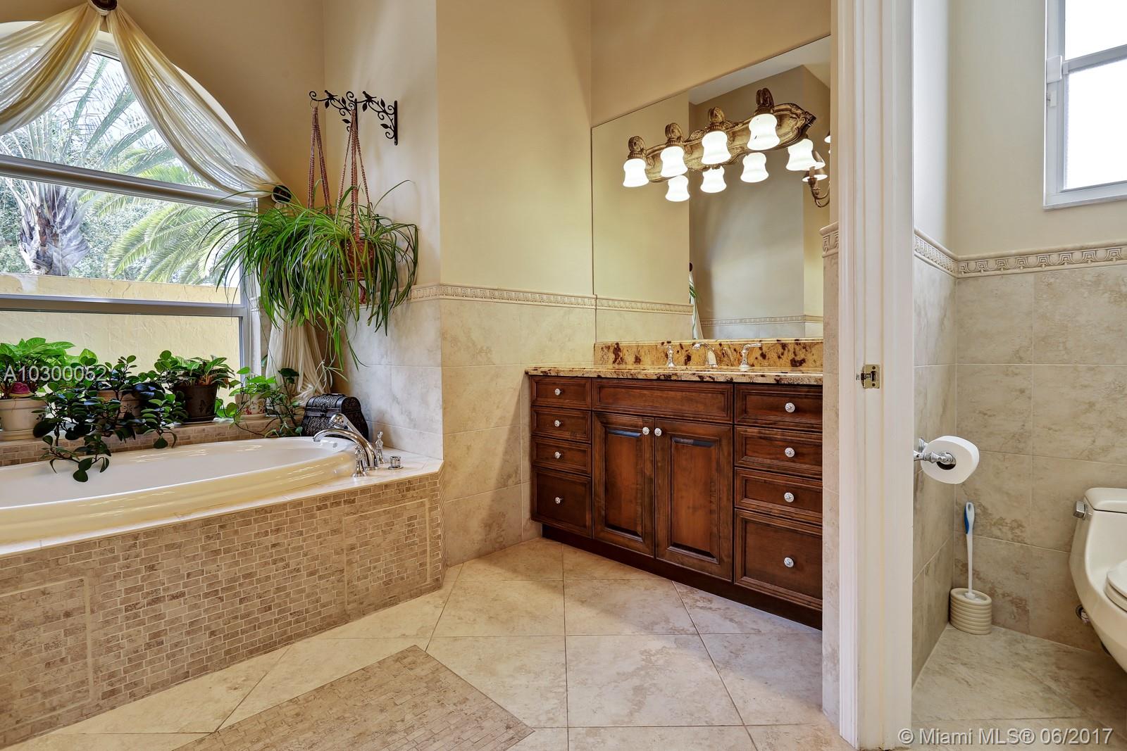 Lakefront custom built Greenwich model, almost 3000' sq. of luxurious and upgraded living area w. 4BR, 3FBA + Den. Crema Marfil marble floors throughout the social areas. Gourmet kitchen features custom Quartzite countertops (Blue Louise), 42” wood cabinets, under-cabinet lighting, stainless steel appliances, including Sub-Zero refrigerator/freezer, KitchenAid double oven & microwave, warming drawer & dishwasher. Impact glass front & rear doors and windows, accordions shutters on the sides. Tiled roof & gutters installed in 2007. Gold travertine pool deck & recently resurfaced saline chlorinated pool & spa with waterfall feature. Fully maintained dual zone, multi-speed 18.5 Seer A/C units. Hybrid wired and wireless security system with 2 remotes and digital dialer. Lake fed irrigation.