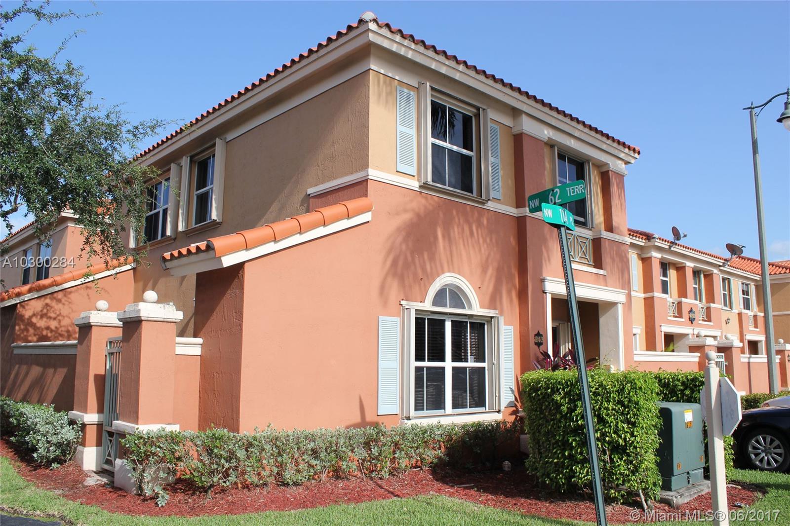 BEAUTIFUL TOWNHOUSE IN AN UPSCALE AND SAFE GATED COMMUNITY WITH 24 HOUR SECURITY, SWIMMING POOL, KIDS' PLAY AREA, WALKING DISTANCE FROM AN A+ ELEMENTARY SCHOOL AND CLOSE TO A+ MIDDLE AND HIGH SCHOOLS. TOWNHOME HAS 3 BEDROOMS AND 2.5 BATHROOMS, MEXICAN TILE FLOOR ON FIRST LEVEL, LAMINATED WOOD FLOORS ON SECOND LEVEL. UPGRADED WITH NEW A/C, REFACED KITCHEN WITH S/S APPLIANCES AND ITALIAN GRANITE COUNTERTOP, PAVED PATIO AND TOP OF THE LINE ACCORDION SHUTTERS. LOCATED CLOSE TO I75, PALMETTO EXPSWAY, AND MINUTES FROM THE AIRPORT!
