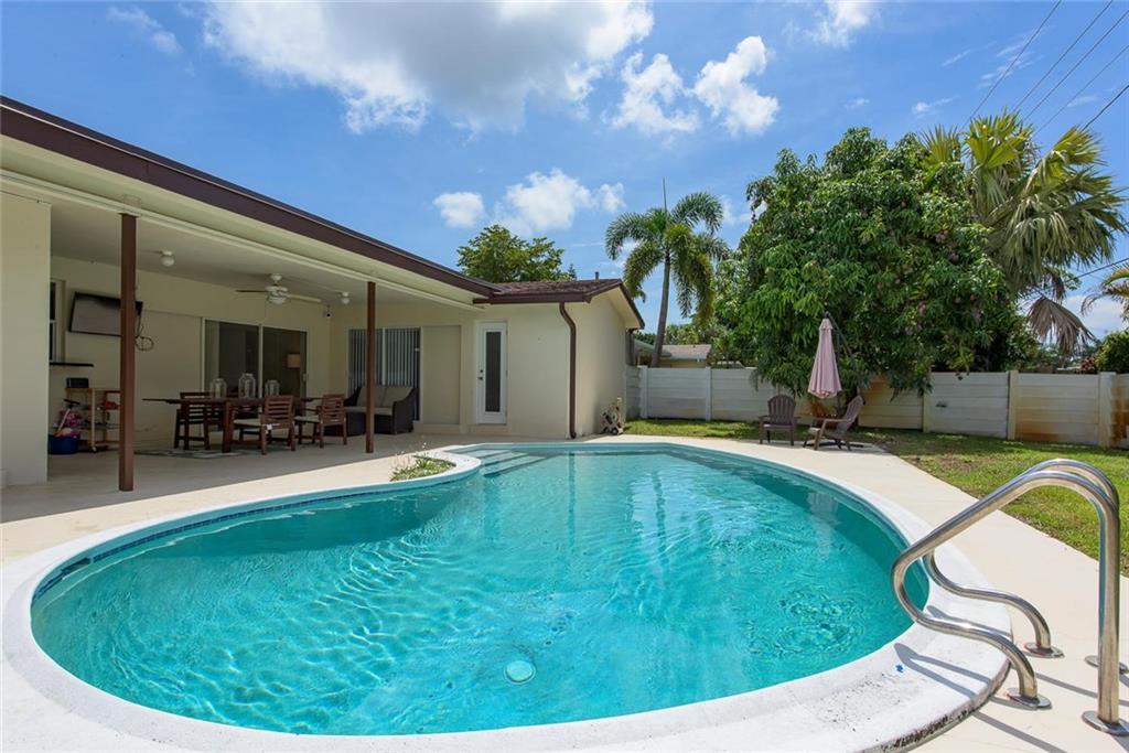 BRIGHT AND SPACIOUS HOME NEAR THE BEACH. SPARKLING POOL AND LARGE COVERED PATIO W/ NEW FLAT ROOF. RENOVATED KITCHEN W/ GRANITE, WOOD CABINETS AND STAINLESS STEEL APPLIANCES. LARGE BEDROOMS AND BATHROOMS. MASTER HAS LARGE WALK IN CLOSET WITH BUILT-INS. NEUTRAL TILE FLOORS THROUGH OUT. NEAR MAJOR HIGHWAYS.