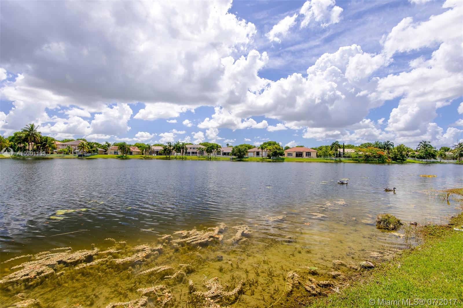 Beautifully remolded single story home in Bristol Isle with one of the best lake views. This 3 bedroom 2 bath home has according shutters, stamped concrete drive way, tiled back yard patio area, large master bedroom with siting area expanded and permitted, and new light fixtures, including chandeliers included. Exterior surveillance cameras and monitoring equipment also included. All bath rooms and kitchen were upgraded and nicely tiled. Garage has a separate work area. Stainless Steal appliances, brand new A/C, plus much more. Don't miss this opportunity to own this gem of a home.