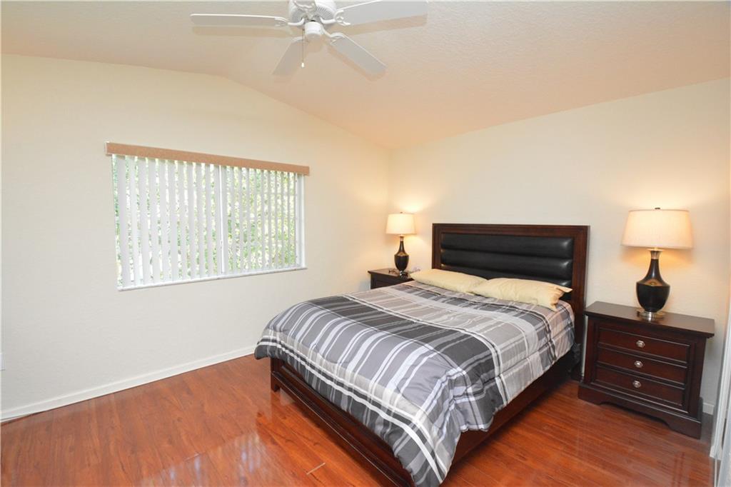 Beautiful townhome in the resort style community of Sunset Lakes. Home features one bedroom and full bath on the first floor. Two bedrooms and two full baths on upper level. Built in computer desk area in upper level. Gorgeous laminate floors on upper level, all bedrooms and stairs. 2 car garage. Full use of all Sunset Lakes amenities: pool, tennis, exercise, basketball, playgrounds,etc. Incl basic cable & sec system monitoring. Home is move in ready.