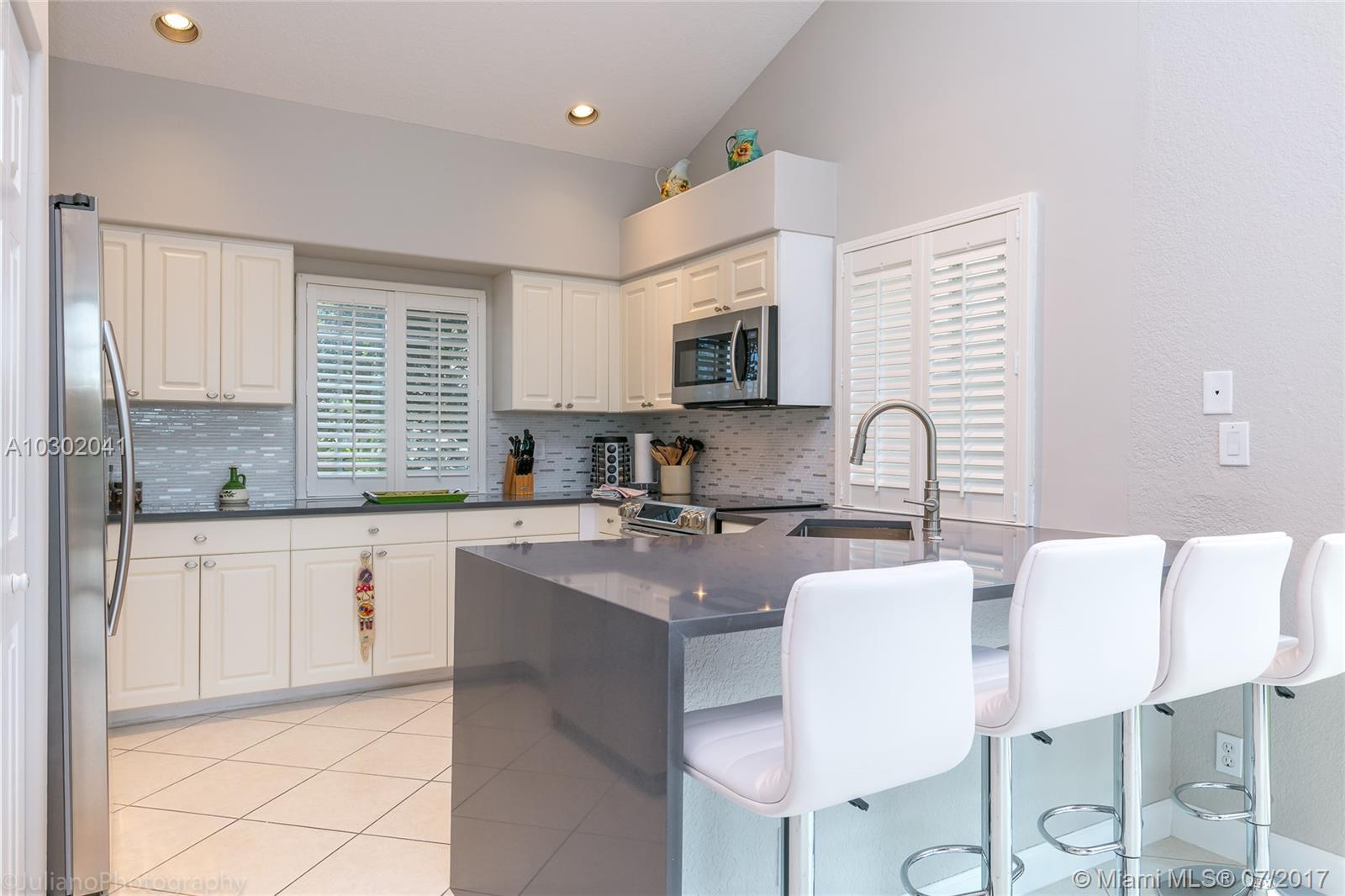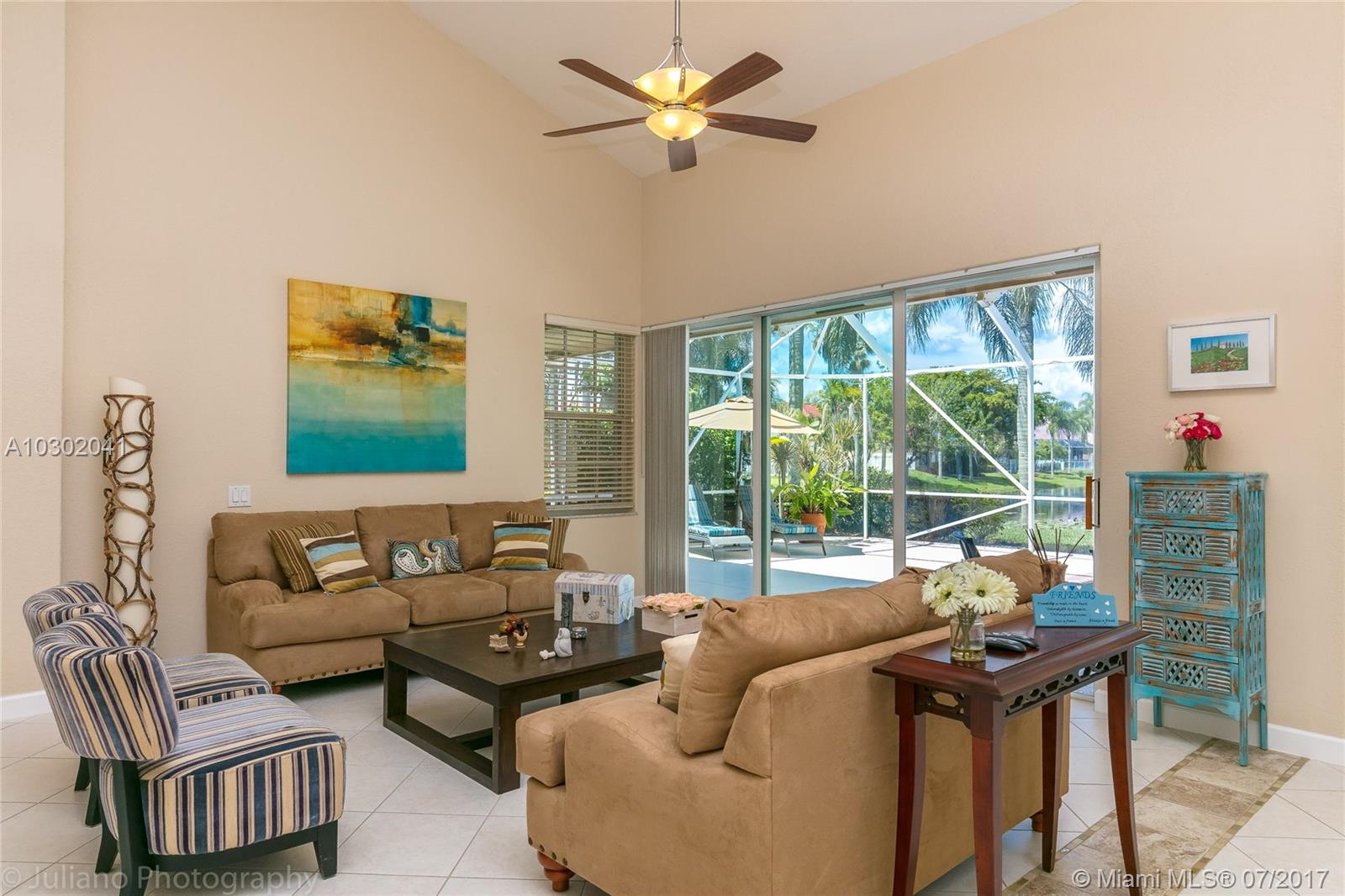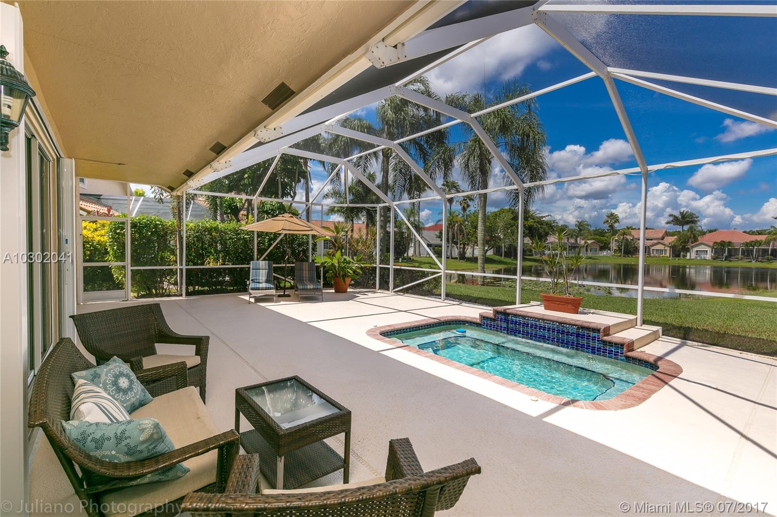 Spectacular waterfront home, very bright, with spacious floor plan and high ceilings, IN PRISTINE CONDITION! Newly UPGRADED KITCHEN with BRAND NEW STAINLESS STEEL APPLIANCES. Excellent location, in a gated community, walking distance from RATED-A schools and very close to shopping and dining. NEWER ROOF, NEWER AC, NEW ACCORDION SHUTTERS. Heated pool/spa. Water filtration system installed serving the whole house. Screened patio with a calm and amazing lake view: enjoy spectacular sunsets from the backyard! Fantastic community pool just minutes away from home. OPTION TO BE SOLD FURNISHED.