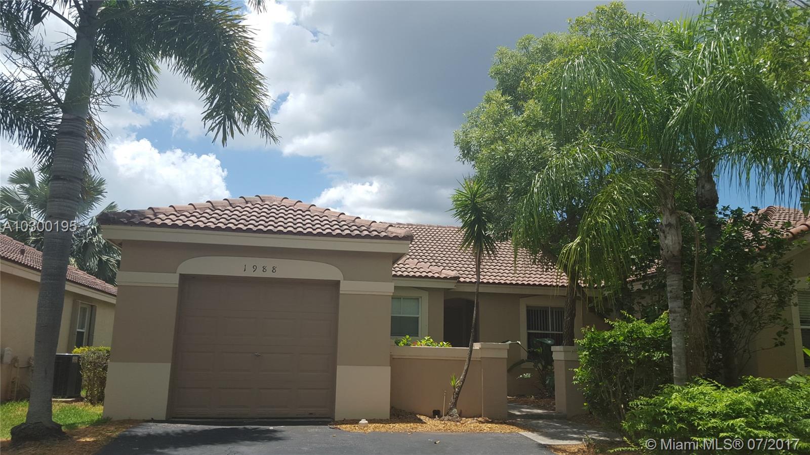 Spacious 2 B/2B Single Family Home For Sale in the beautiful community of The Hammocks, located in the exclusive city of Weston. This one-story home has one car garage, two cars space in the driveway and a cozy patio. Lush landscape is included. The Hammocks' residents have access to the prestigious Savannah resort style clubhouse which includes a lot of enjoyment amenities like Pools, Waterslide, Mini Golf Course, Playground and, basketball/volleyball courts amount others. Excellent location close to I-95 and I-595, with easy access to the main cities in Broward and Miami-Dade counties and A-graded schools, which made it ideal for families with kids. Seller wants to hear offers. Is ok for rented after purchase and there is no HOA obligation required.Please call the Listing Agent.