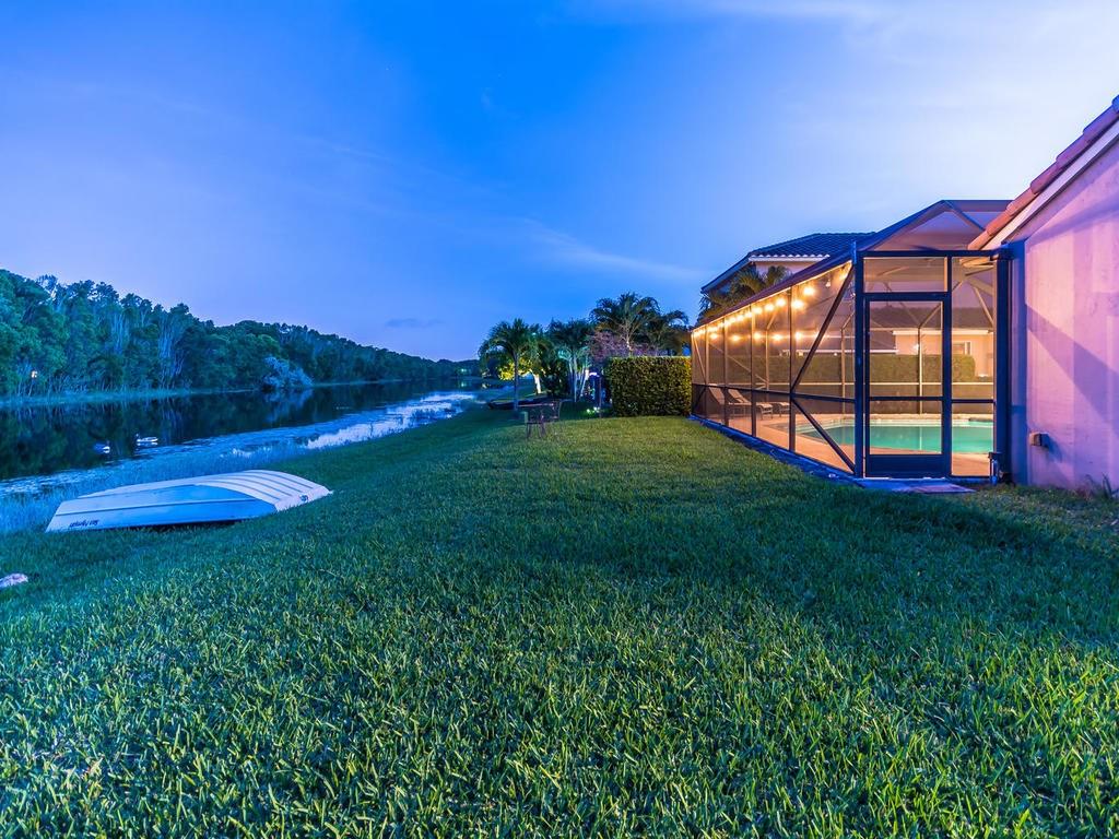 GORGEOUS 4/2.5/2CG SINGLE STORY ON PEACEFUL LAKEFRONT LOT W/LUSH PRIVACY BERM & HUGE YARD FOR PLAY! AN ENTERTAINERS DREAM! LARGE COVERED SCREENED PATIO W/EXTENDED OVERHANG, TWINKLING LIGHTS & HEATED POOL, PERFECT FOR YEAR-ROUND ENJOYMENT! SPACIOUS SPLIT FLR PLN W/HIGH CEILINGS, WOOD LAM FLOORS IN LIV AREAS, REMODELED GRANITE KITCHEN, WOOD CABS, NEWER SS APPLI INCL DOUBLE OVENS & LARGE SNACKBAR ISLAND. NEW ROOF! CABANA BTH, NEW WASHER, OUTDOOR SPEAKERS. GUARD GATED, CLUBHOUSE, TOTLOT, BALL PARK, A+SCHOOLS!