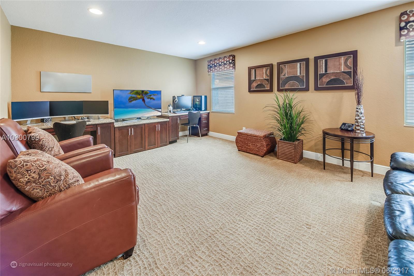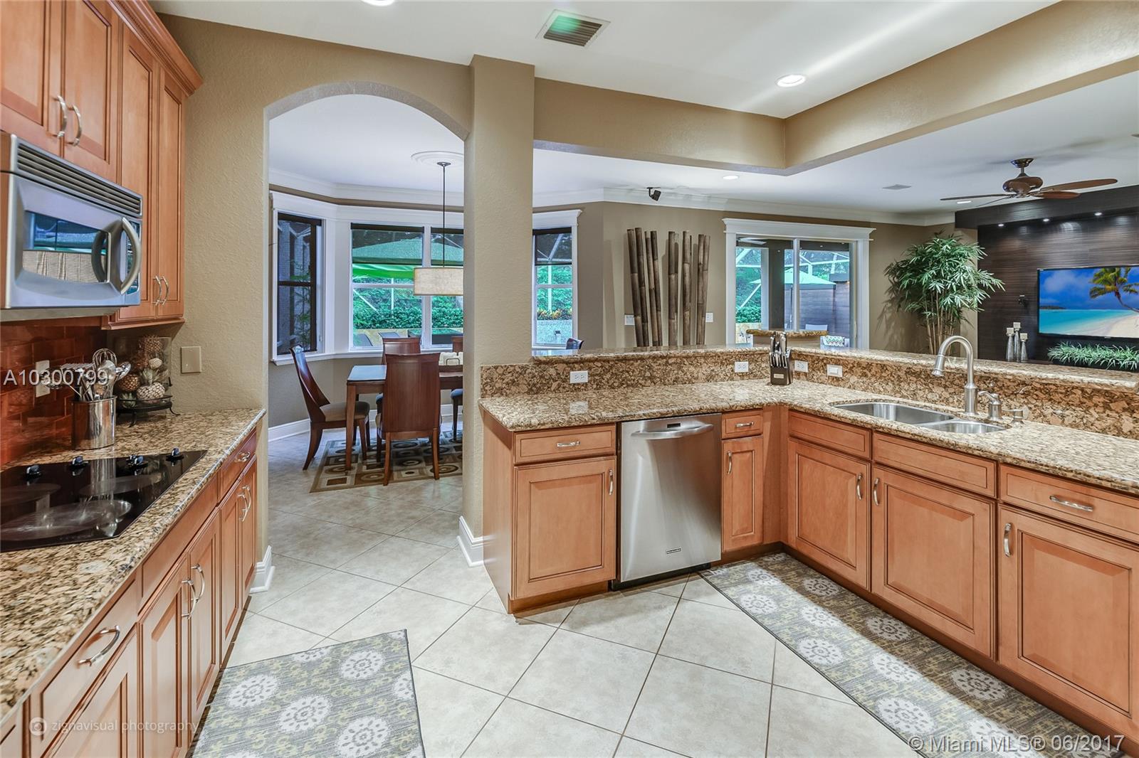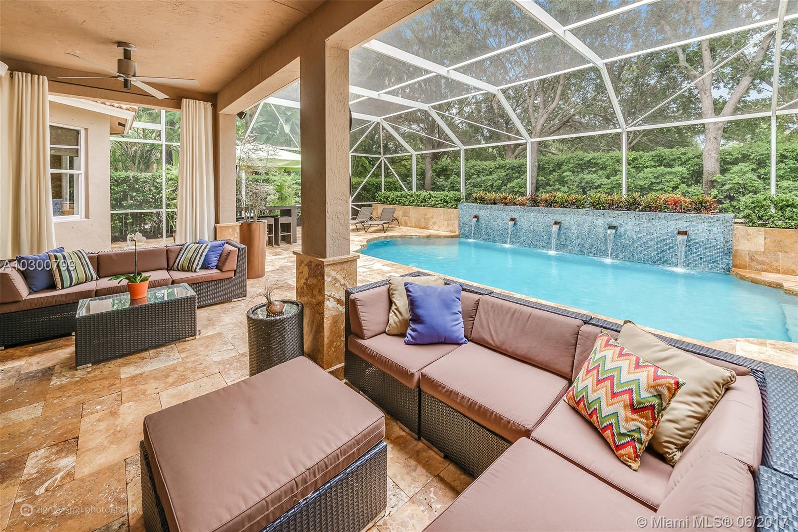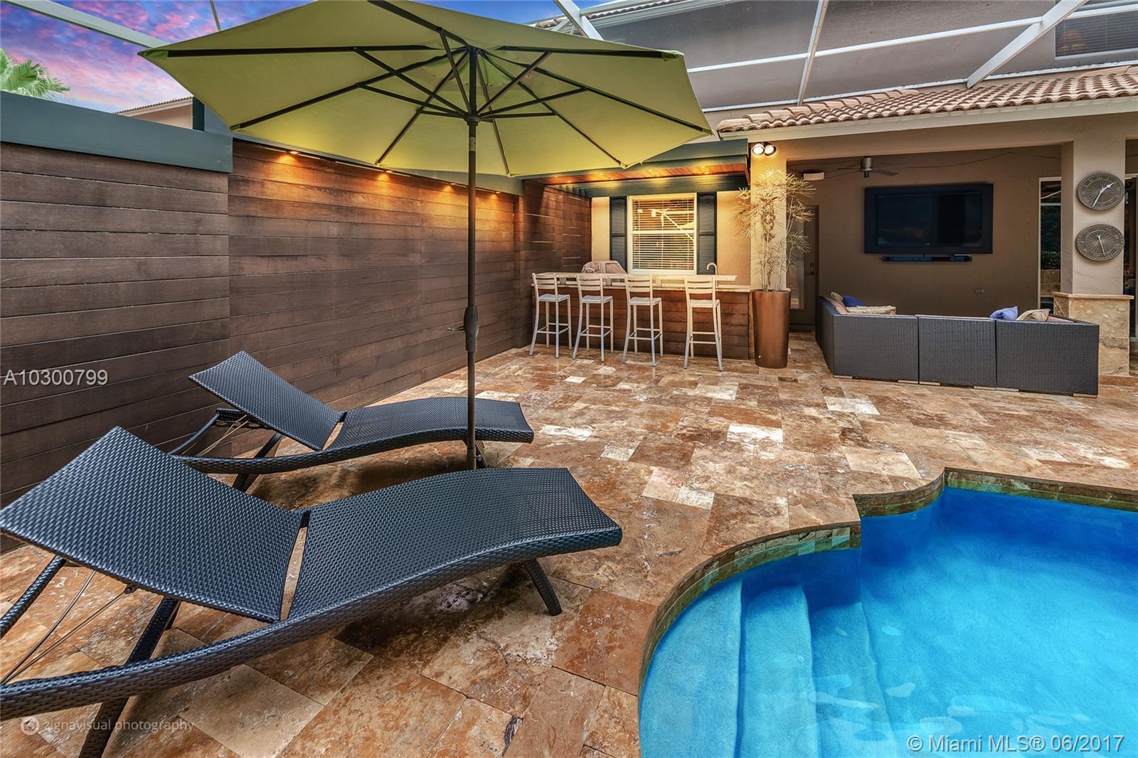 This immaculate, airy, luxurious 2-story home boasts a resort-style screened in pool & patio complete with summer kitchen. With 5 large bedrooms (including 1st floor in-law suite) 5 baths, den, large upstairs study with 2 built in desks & oversize closets that could easily be a 6th bedroom, this home has generous living space. Closet organizers in each bedroom is great bonus. Gourmet kitchen with Italian-style 42" cabinetry, stainless steel appliances & granite counter tops overlook the large, inviting family room & relaxing pool area. This home showcases a double wrought iron staircase & an oversize master bedroom suite, complete with 2 large walk-in closets & sitting area, ensures parents all the privacy they need. This desirable, gated community has A+ schools.
