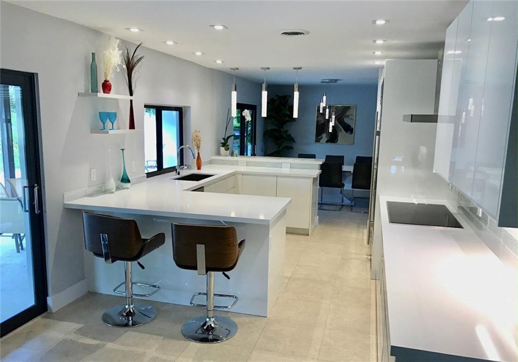 NEW! NEW! NEW! Light, bright, open modern floor plan. New construction interior 2017, including new Low-E PGT and CGI impact windows and doors, new Italian glossy white kitchen with quartz countertops & new Subzero refrigerator & new Wolf ovens & new 36" induction cooktop & new Asko dishwasher, new bathrooms w/floating vanities, new LED lighting/updated electric & Hansgrohe plumbing, new pool DiamondBrite, new driveway pavers, new Italian interior doors.
