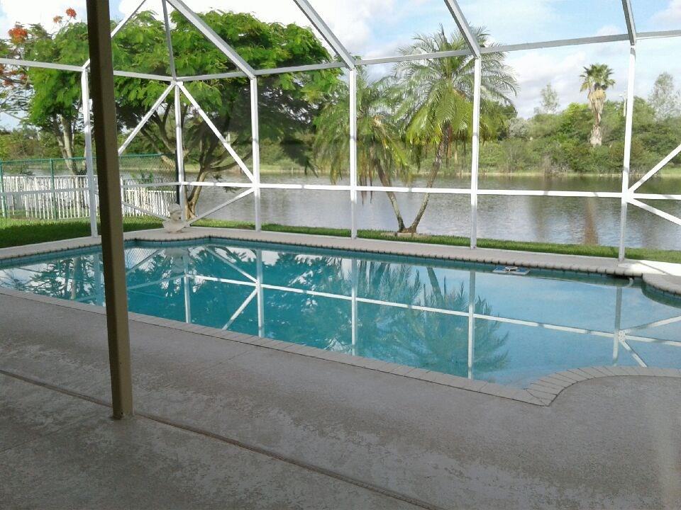 5 bed 3 full baths,water front property with backyard facing west for spectacular sunsets every night from your large screened patio/pool/deluxe spa. Freshly painted!! Excellent Schools!! Gated community!! Huge master bedroom,with large Roman Tub and dual sinks. Large bedroom and full bathroom on 1st floor. Kitchen opens to family room!! Family room overlooks pool and water view!! Accordion shutters and hurricane rated garage door.!!!