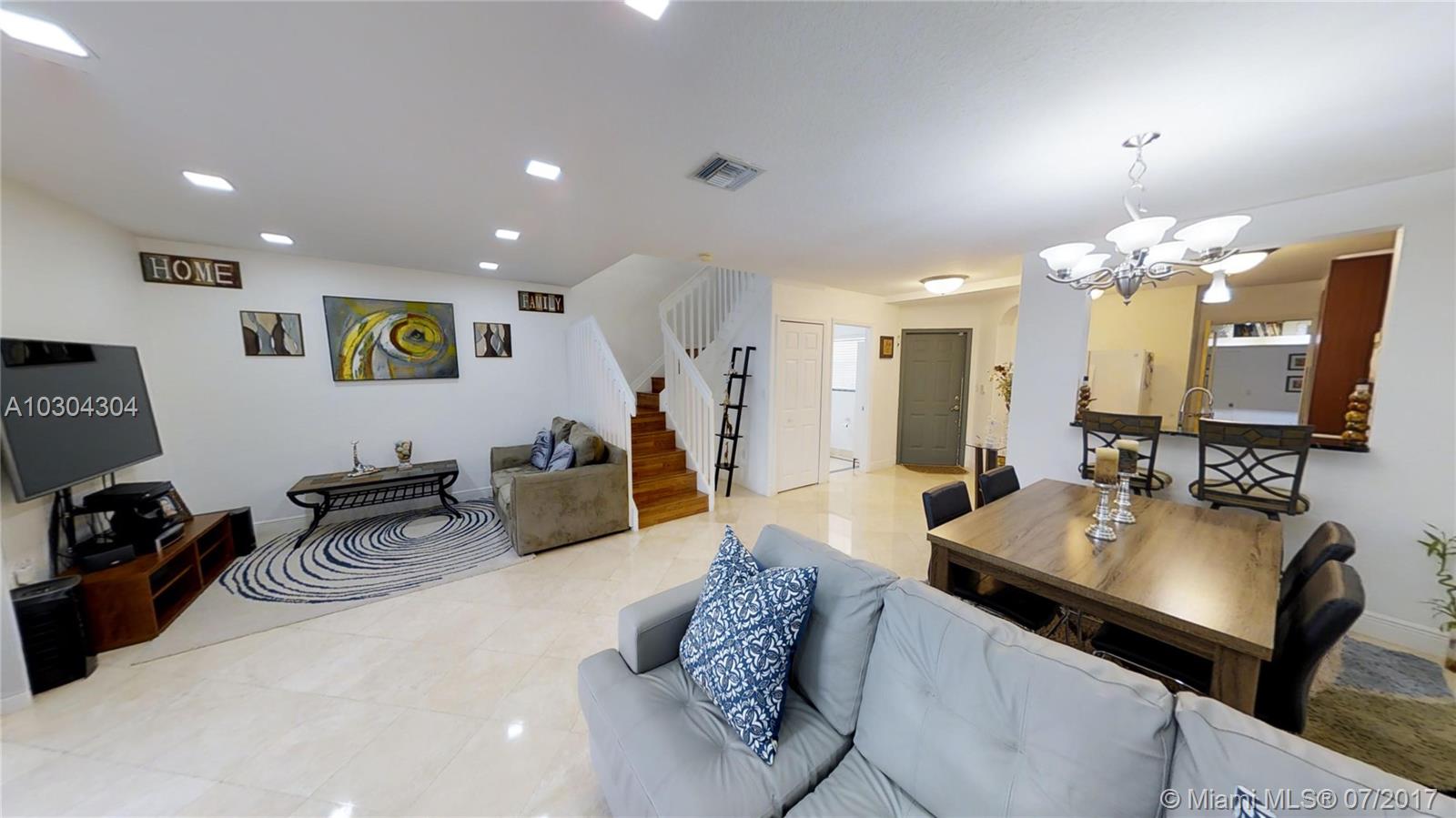 Home sweet home!!! Impeccable Townhouse with 3 Bed 2.5 Bath, everything has been upgraded, modern kitchen with granite countertops, hurricanes accordion shutters, gorgeous landscaping, marble floor in 1st floor and wood laminated in 2nd-floor, pavers tile in patio and french doors. One (1) Bedroom on the 1st level, and two (2) Bedrooms upstairs. Excellent location, gated community " Dimensions at Doral" only 90 townhouses and low association fee ($133 per month)