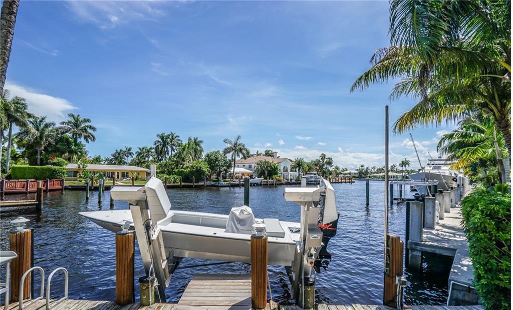 Beautifully updated 3 bedroom 2 bath waterfront home in Dolphin Isles. Huge open living space. Oversize 15,000 sq foot lot offers big side yard. Great combo of privacy and great water views. Stunning kitchen w/ Subzero and gas cooking. All Hurricane Impact doors and windows. Newer roof. Great master-big walk in closet and large bath. New 12,000 lb boat lift! Stunning views! A/C 1 year. Bayview Elementary school district. Walk to Fort Lauderdale beach! Super wide canal. Close to beach and Birch park.