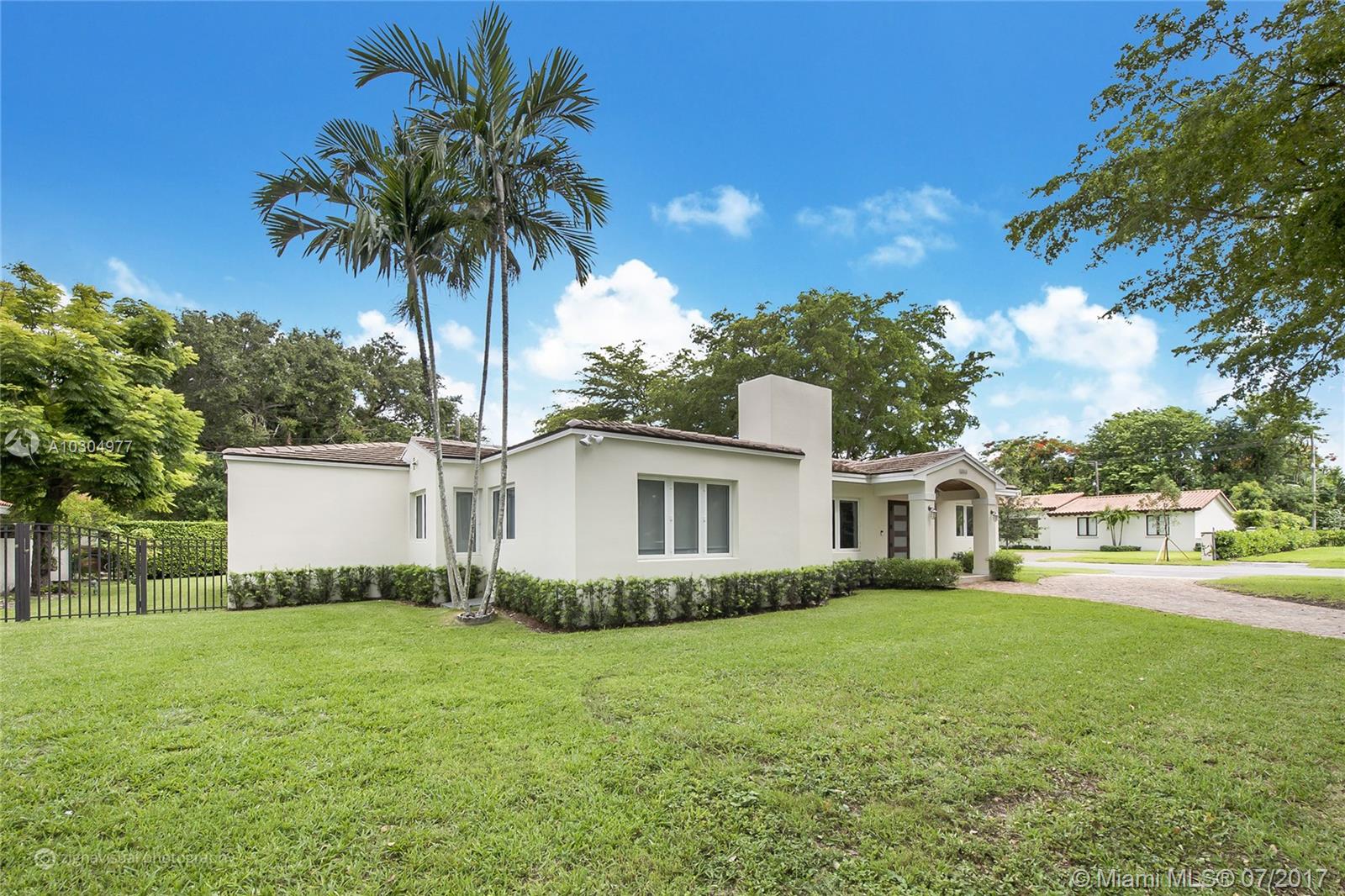 Beautiful 1-story corner lot, Coral Gables home exudes charm and elegance. Featuring an open floor plan and updated kitchen and guest bath, wood floors, impact windows and French doors leading to a large swimming pool and backyard, this 3BR/2BA home is perfect for entertaining. Paved driveway and one-car garage provide ample room for parking for guests, within walking distance to Granada Golf course and Gables Country Club. Centrally located to schools, airport, shops and restaurants.