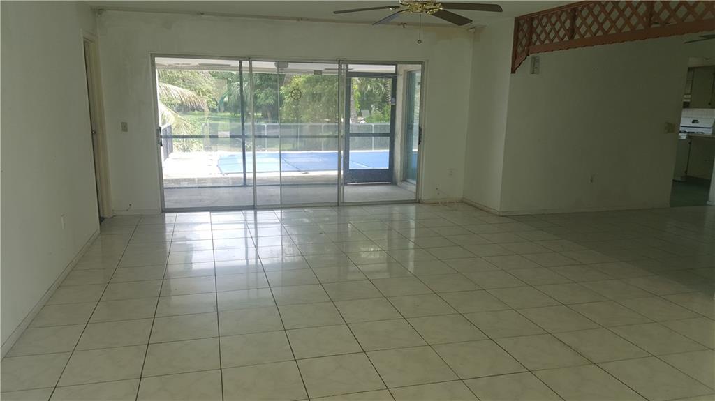 Beautiful 1 story single family home with 3 bedrooms / 2 bathroom with a 2 car garage and a pool located in Miramar. Large bedrooms with tile flooring. Spacious kitchen has formica countertops and formica cabinetry. Property features a large livingroom, screened porch, utility room, and a large backyard. Washer dryer hook up. Community shows pride of ownership.