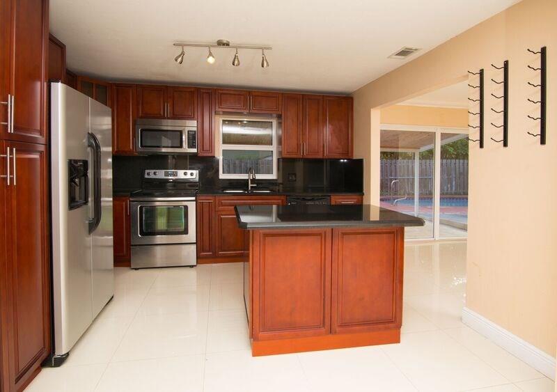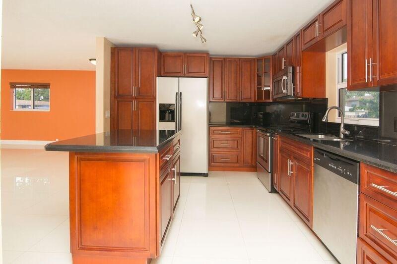 Spacious and bright, updated pool home, 2 bed, 2 baths plus den/office featuring new roof with warranty, impact windows, new floors, updated baths and kitchen with SS appliances & granite counter tops. Large fenced-in backyard offers privacy to enjoy the free form pool and covered patio for outdoor events. Most desirable location with easy access to shopping, beach, restaurants and major highways, close to downtown Fort Lauderdale and airport.