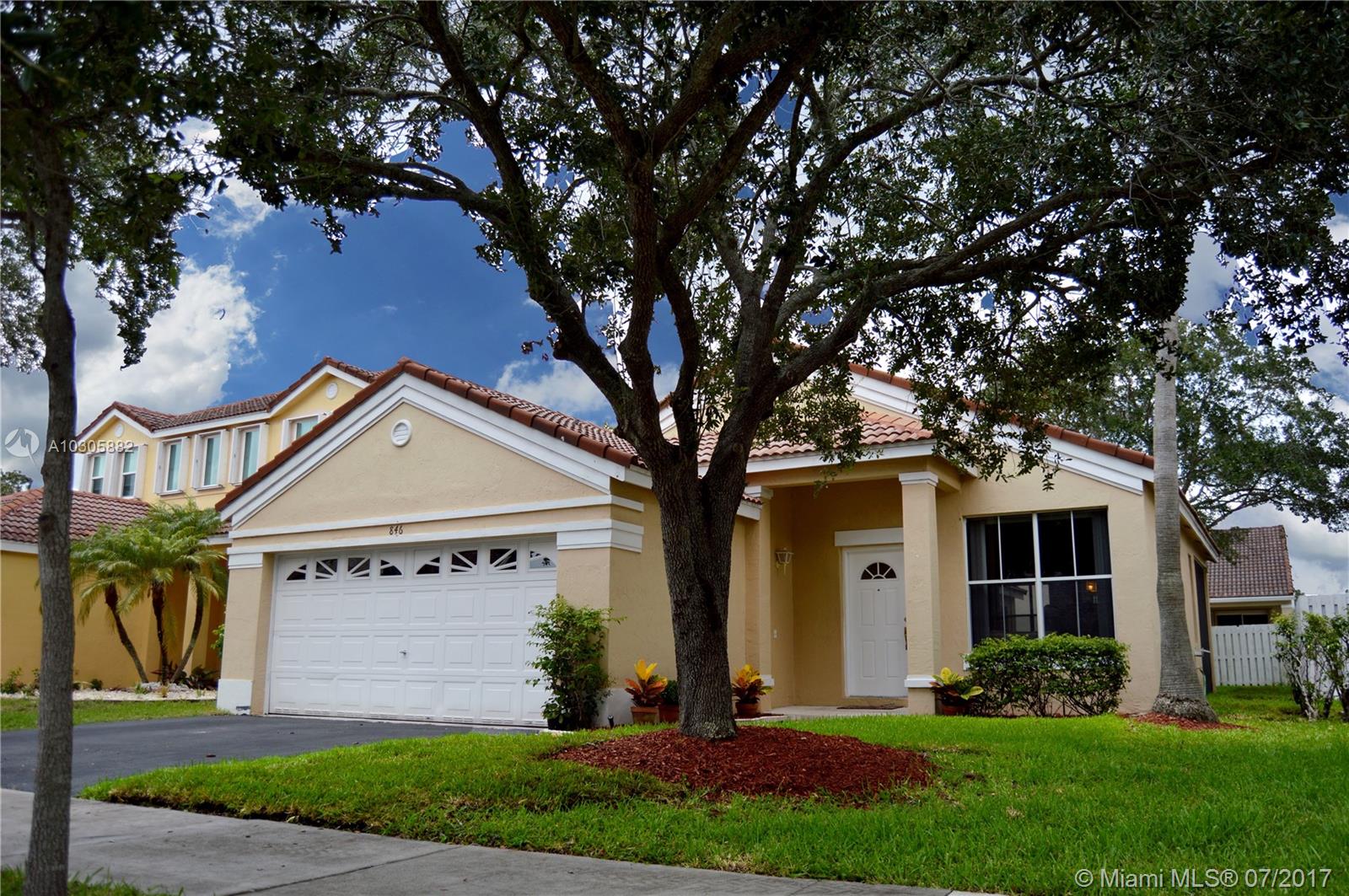 Quaint 3/2 in HOT HOT HOT Weston. Terrific layout with split bedroom plan. Family room sits off of kitchen. Interior Laundry and 2 car garage. Screened in patio and nice sized back yard. Lots of natural lighting. Excellent community of North Lakes with guard gate and community pool with rec facilities. Kids can ride bikes to nearby A-rated Eagle Point Elementary. A-rated Tequesta Middle and A-rated Cypress Bay! Priced to sell!