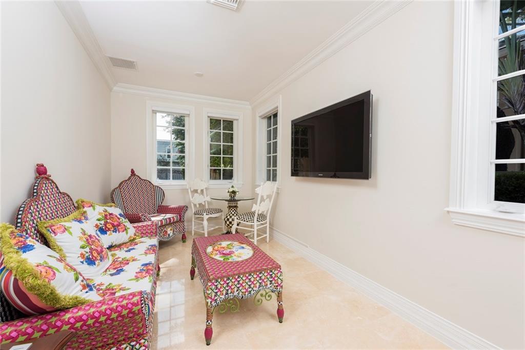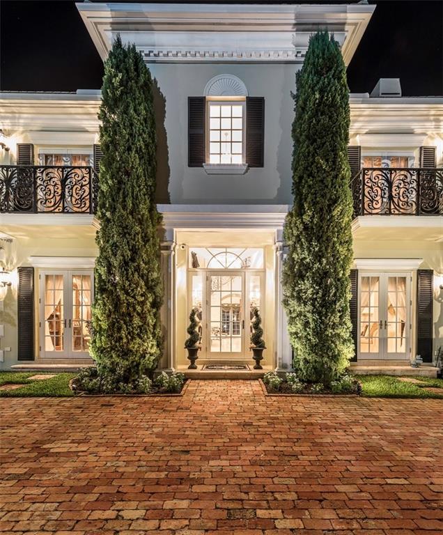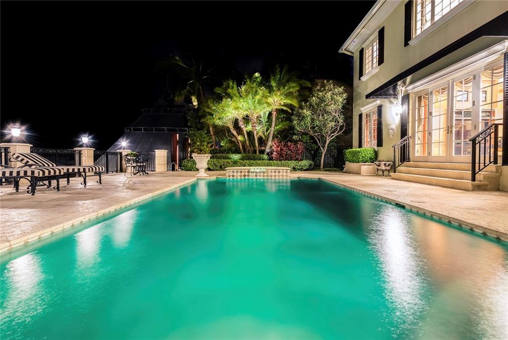 Walled & gated for privacy & security stunning transitional Georgian-inspired residence shows immaculately. Beautiful landscaped resort style gardens, pool area & dock.Open Chef's kitchen,breakfast area & family room blend for casual entertaining.Welcoming formal living room with fireplace adjoining dining room. Separate pool/guest house.Potentially two bedroom suites 1st level. Ultra-luxurious Master Suite features fireplace,private balcony, separate his/her bathrooms & dressing rooms + 3 bedroom Suites.