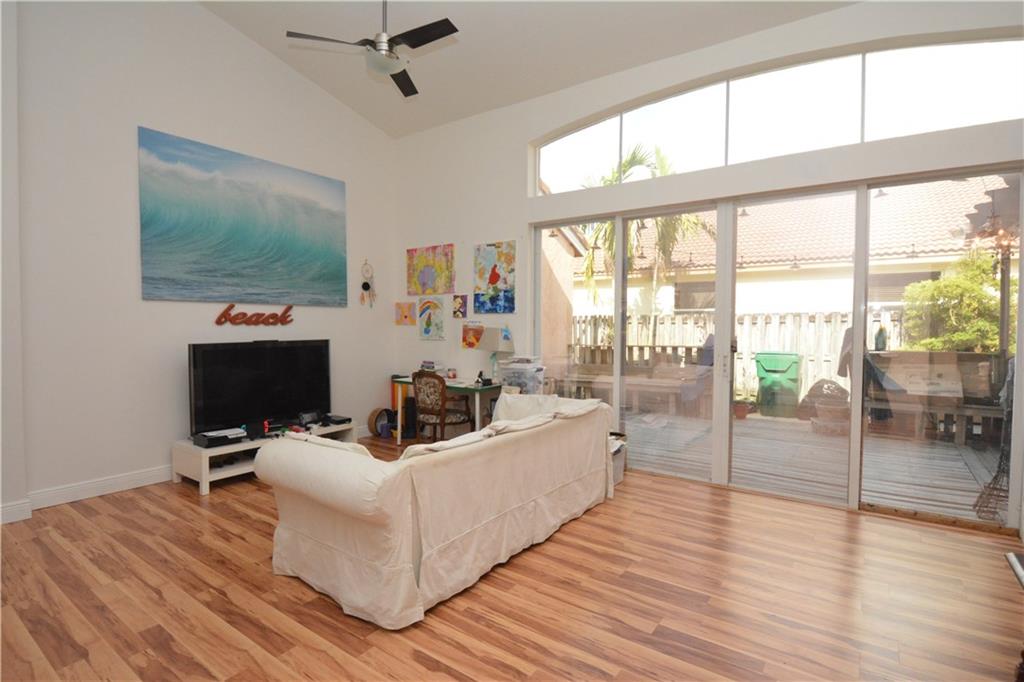 Lovely one story home in the resort style community of Sunset Lakes. Huge fenced in backyard with plenty of room for a pool. Side of house has a large deck with built in benches and an overhang, perfect for entertaining. Gorgeous new flooring throughout main living areas. Great lighting in this open floor plan. Huge kitchen has large center island with storage and seating area, separate breakfast area and lots of cabinetry. Newer washer & dryer. Home is move in ready.