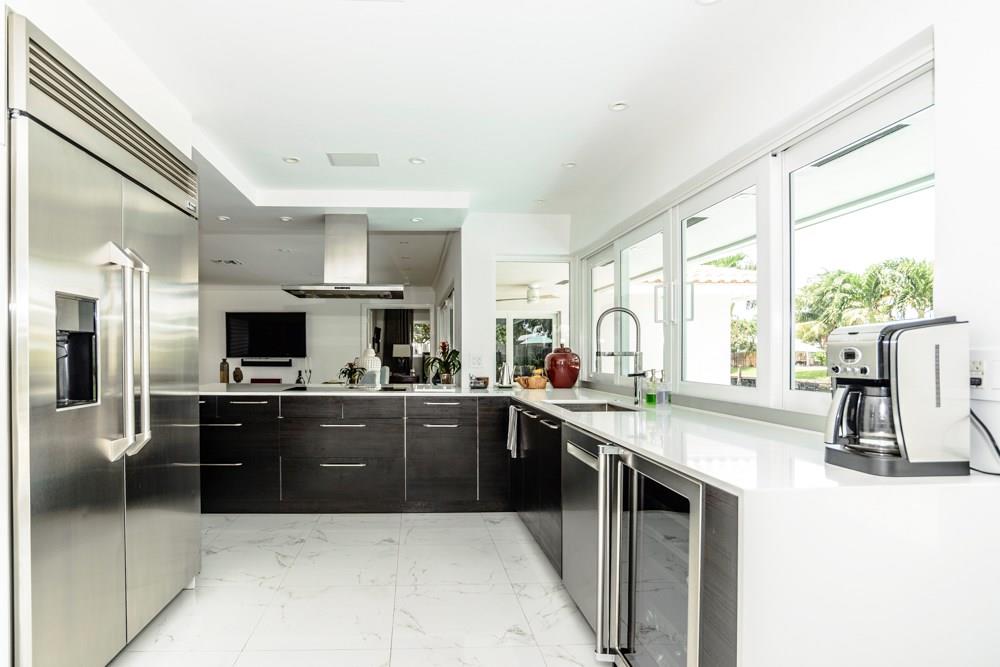 WOW! STEP IN TO THIS MODERN STYLE DESIGNED HOME ON THE WATER. HOME HAS BEEN FULLY RENOVATED AND NO DETAIL HAS BEEN SPARED. VERY LIGHT& BRIGHT WITH OPEN FLOOR PLAN THAT IS PERFECT FOR ENTERTAINING. WINDOWS AND SLIDERS ACROSS THE BACK OF HOME LET YOU ENJOY YOUR TROPICAL OASIS. KIDNEY SHAPED POOL WITH COVERED SEATING AREA AND BUILT IN GRILL STATION. ALL IMPACT WINDOWS, KITCHEN WITH DOUBLE OVENS, HIGH QUALITY WOOD FLOORS, INSIDE LAUNDRY ROOM AND FULL KITCHEN PANTRY ARE JUST A FEW FINE DETAILS. SEE TODAY!